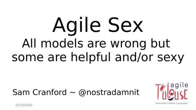 A discussion about agile values and principles and a comparison between them and the implicit values of one's sex life. A tour of some common maturity models and how they affect and apply to agile and/or sex life models.