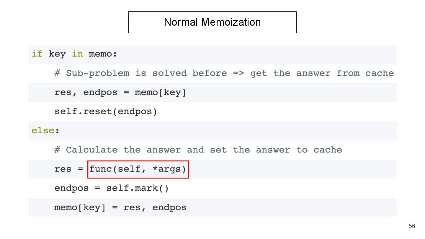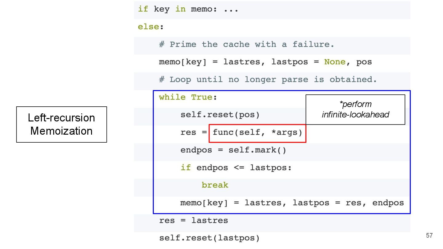 of operator) < (count function call): return False Approach 2 reverse the call stack (adopted in CPython!) Source: Guido's Medium (Left-recursive PEG Grammars)