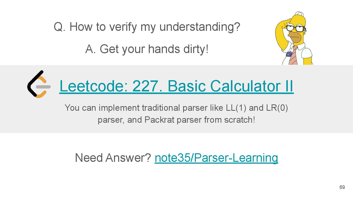 LL(1) and LR(0) parser, and Packrat parser from scratch! Leetcode: 227. Basic Calculator II Q. How to verify my understanding? A. Get your hands dirty!