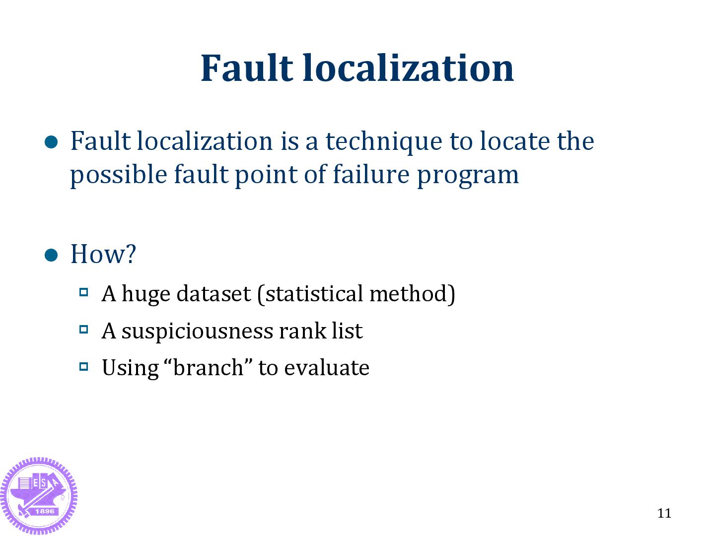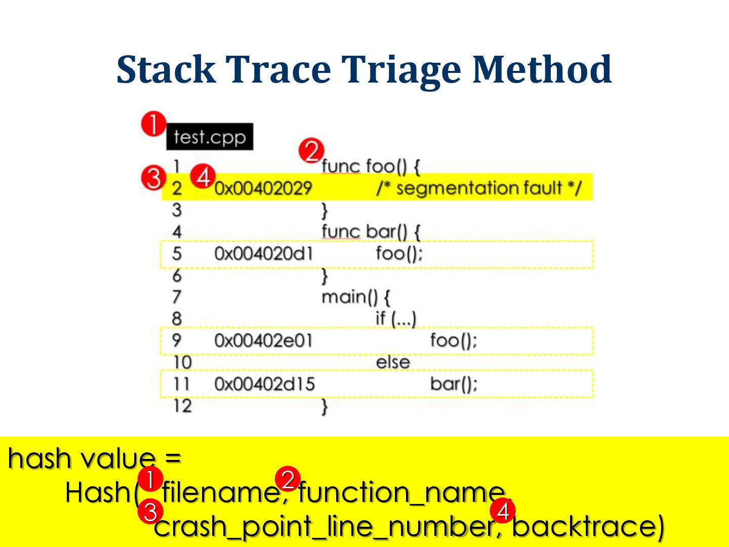 the input of failure program How? Traditional method: Based on stack trace Our new method: Based on code coverage (inspired by fault localization methods) 10