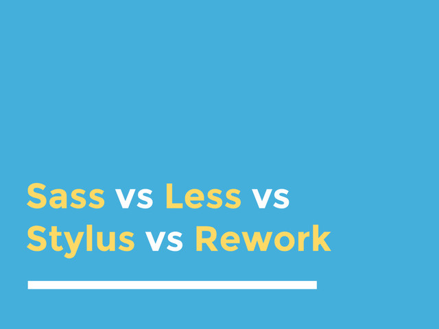 This is a talk I did at #FrontEndParty about the more advanced differences between Sass / Less / Stylus / and the new Rework CSS preprocessors. Since they are all so similar in functionality now, this focuses on helping you understand the advantages / disadvantages of each so you can choose the one that works best for your project