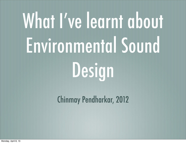 What I’ve learnt about Environmental Sound Design Chinmay Pendharkar, 2012
