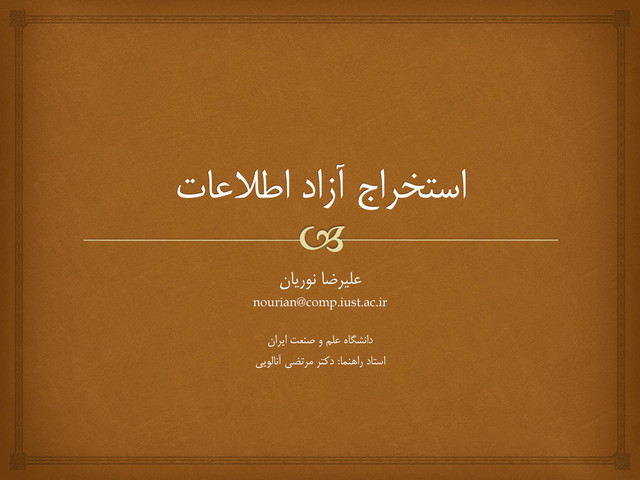 ِتػد شّ یبّ یگظیٍ یاشث يییؼت تلبق ییبٌؼه یبّ ؾقً جاشختػا یبّ ؾقً ىاٌَػ ىدشک شد بث تبػالعا تلبق یبّ تلبق صا ُدبفتػا قخـهبً ( ِهادا ) Perpetrator Person/Org who blows up, plants, hurls, stages, is suspected, … Instrument A physical object that is exploded, explodes, causes, is set off, … Target A physical object that is damaged, is destroyed, is exploded at, … Police Person/Org who questions, discovers, raids, investigates, arrests, … [Chambers, ACL'11]