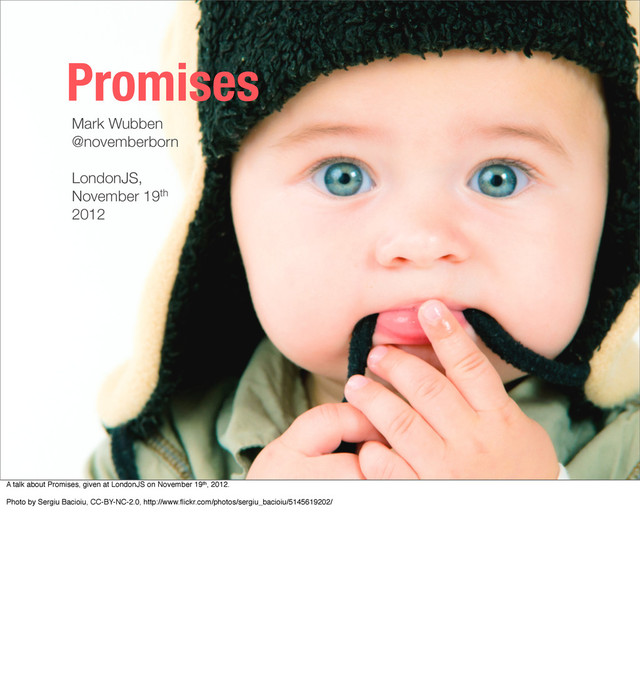 about Promises, given at LondonJS on November 19th, 2012. Photo by Sergiu Bacioiu, CC-BY-NC-2.0, http://www.flickr.com/photos/sergiu_bacioiu/5145619202/
