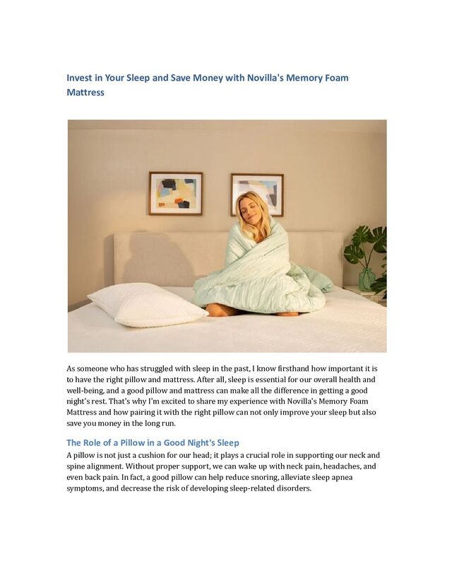 with Novilla Choosing the right pillow can be overwhelming, but Novilla makes it easy with their selection of pillows designed for different sleeping styles. Their pillows come in three different levels of firmness: soft, medium, and firm. They also have a pillow specifically designed for combination sleepers, which can adjust to different sleeping positions. Novilla's pillows are made with memory foam, which conforms to the shape of your head and neck, providing customized support. The memory foam also helps reduce pressure points, which can lead to a more comfortable and restful sleep. Top Features to Look for in a Pillow When choosing a pillow, there are a few key features to keep in mind. First, consider the pillow's fill material. Memory foam is an excellent option for its ability to conform to your shape, but other materials like down, feathers, and polyester can also provide comfort and support. Second, consider the pillow's firmness level. As previously mentioned, different sleeping styles require different levels of support. A pillow that is too soft or too firm can cause discomfort and pain. Lastly, consider the pillow's size and shape. Standard pillows may not be sufficient for side sleepers or those with larger frames. Additionally, some pillows are contoured for specific sleeping positions, providing additional support and comfort.