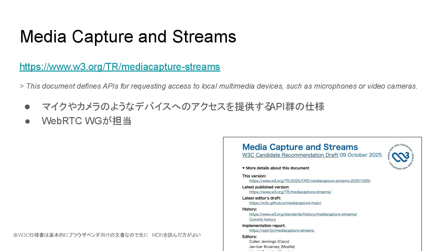Media Capture and Streams: W3C仕様と現場での知見