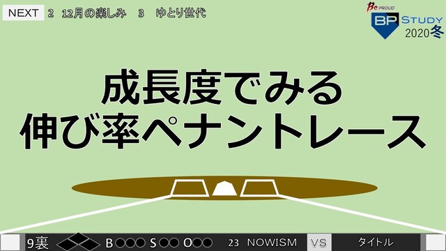 そこで、この発表では「昨シーズンと同じ打撃成績だった得点どれくらい減ったか(増えたか)」という視点から12球団の成長度ランキング作成に挑戦します!