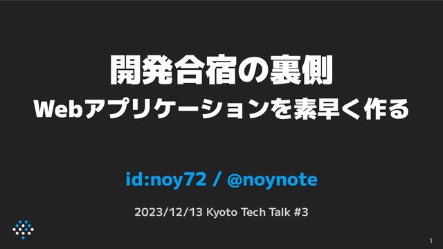 開発合宿の裏側 Webアプリケーションを素早く作る id:noy72 / @noynote 2023/12/13 Kyoto Tech Talk #3