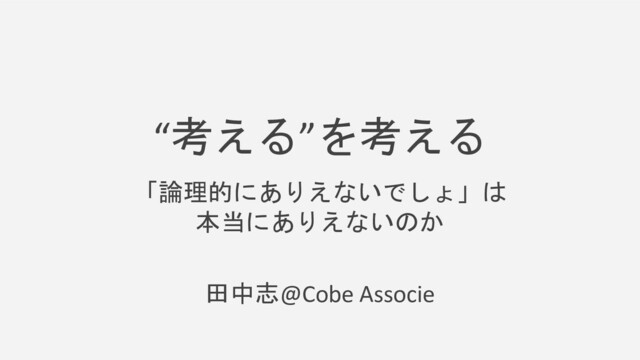 “考える”を考える 「論理的にありえないでしょ」は 本当にありえないのか 田中志@Cobe Associe