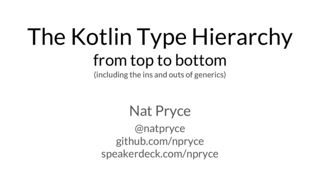 Coming from Java, Kotlin's type system can appear quite daunting: nullable types, Unit, Nothing, Any, variance specifiers, function types, and more. But don't panic! Kotlin's type hierarchy is actually simple – it has very few rules to learn and those rules combine together consistently and predictably. Thanks to those rules, Kotlin useful language features, such as null safety and unreachable code analysis, do not rely on special cases that you must memorise, or ad-hoc checks in the compiler and IDE that stop working when your code gets too complicated.