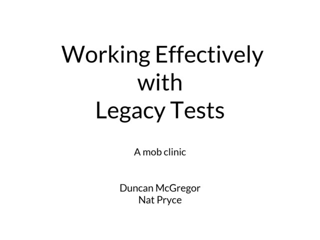 In this workshop, we invite you to bring your unloved legacy tests to a group therapy session. We'll work together to help them change, curbing their destructive behaviours whilst improving their documentation of the system. In a non-judgemental, supportive environment we'll all help the tests to become productive members of society.