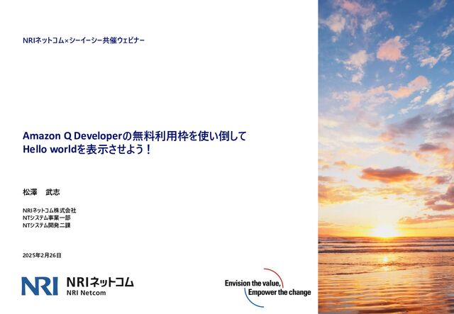 2025年2月26日 Amazon Q Developerの無料利用枠を使い倒して Hello worldを表示させよう! NRIネットコム株式会社 NTシステム事業一部 NTシステム開発二課 松澤