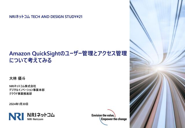 02 Amazon QuickSightのユーザー管理方法 03 Amazon QuickSightの権限について 04 Amazon QuickSightのアセットへのアクセス管理について 05 まとめ 06 自己紹介 01