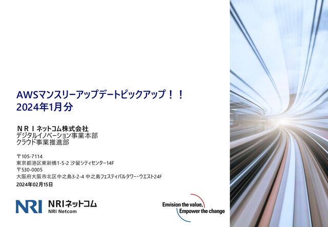AWS Systems ManagerでSSM Agentの自動アップデートが可能に https://aws.amazon.com/jp/about-aws/whats-new/2024/01/aws-systems-manager-ssm-agent-version- update-context-application/ ◼ Amazon ECS が Amazon ECS サービスにおけるデプロイモニタリングの応答性を改善 https://aws.amazon.com/jp/about-aws/whats-new/2024/01/amazon-ecs-deployment-monitoring- responsiveness-services/ ◼ Amazon OpenSearch Service が Graviton2 のサポートをさらに 6 つのリージョンに拡大 https://aws.amazon.com/jp/about-aws/whats-new/2024/01/amazon-opensearch-service-graviton2- additional-regions/ ◼ Amazon CloudWatch Logs でアカウントレベルのサブスクリプションフィルターのサポートを開始 https://aws.amazon.com/jp/about-aws/whats-new/2024/01/amazon-cloudwatch-logs-account-level- subscription-filter/ AWSマンスリーアップデートピックアップ! !