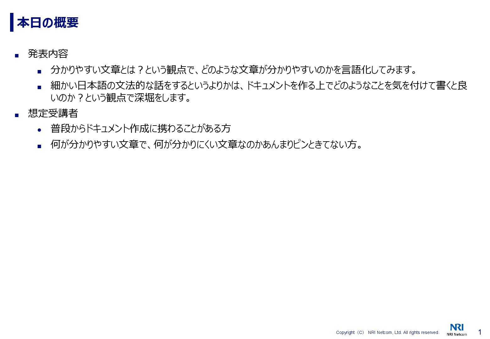 1. 1 Copyright(C) NRI Netcom, Ltd. All rights reserved. 本日の概要 ▪