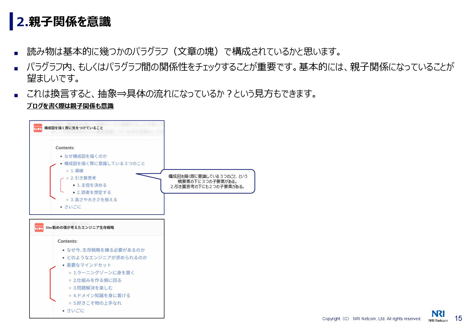 12. 15 Copyright(C) NRI Netcom, Ltd. All rights reserved. 2.親子関係を意識 ▪