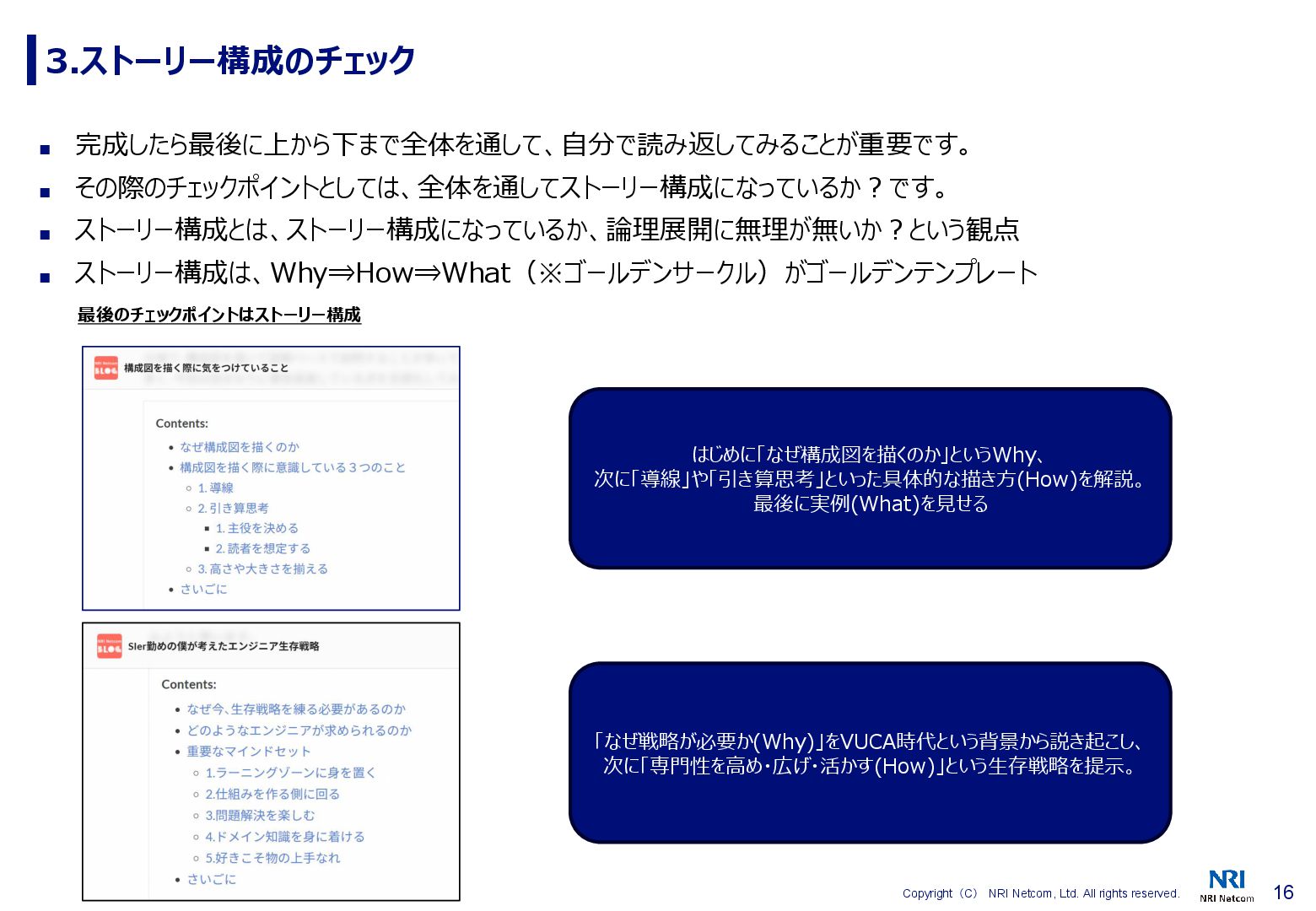 13. 16 Copyright(C) NRI Netcom, Ltd. All rights reserved. 3.ストーリー構成のチェック ▪