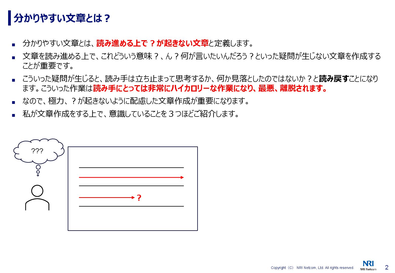 2. 2 Copyright(C) NRI Netcom, Ltd. All rights reserved. 分かりやすい文章とは? ▪