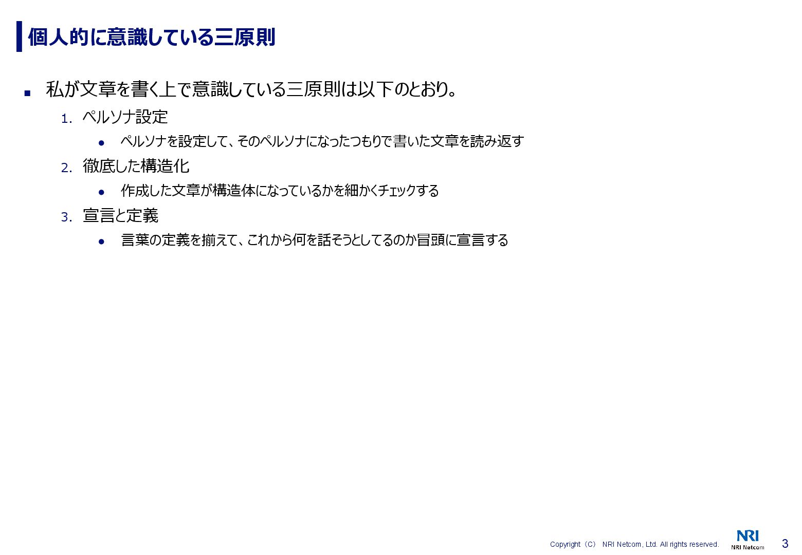 3. 3 Copyright(C) NRI Netcom, Ltd. All rights reserved. 個人的に意識している三原則 ▪