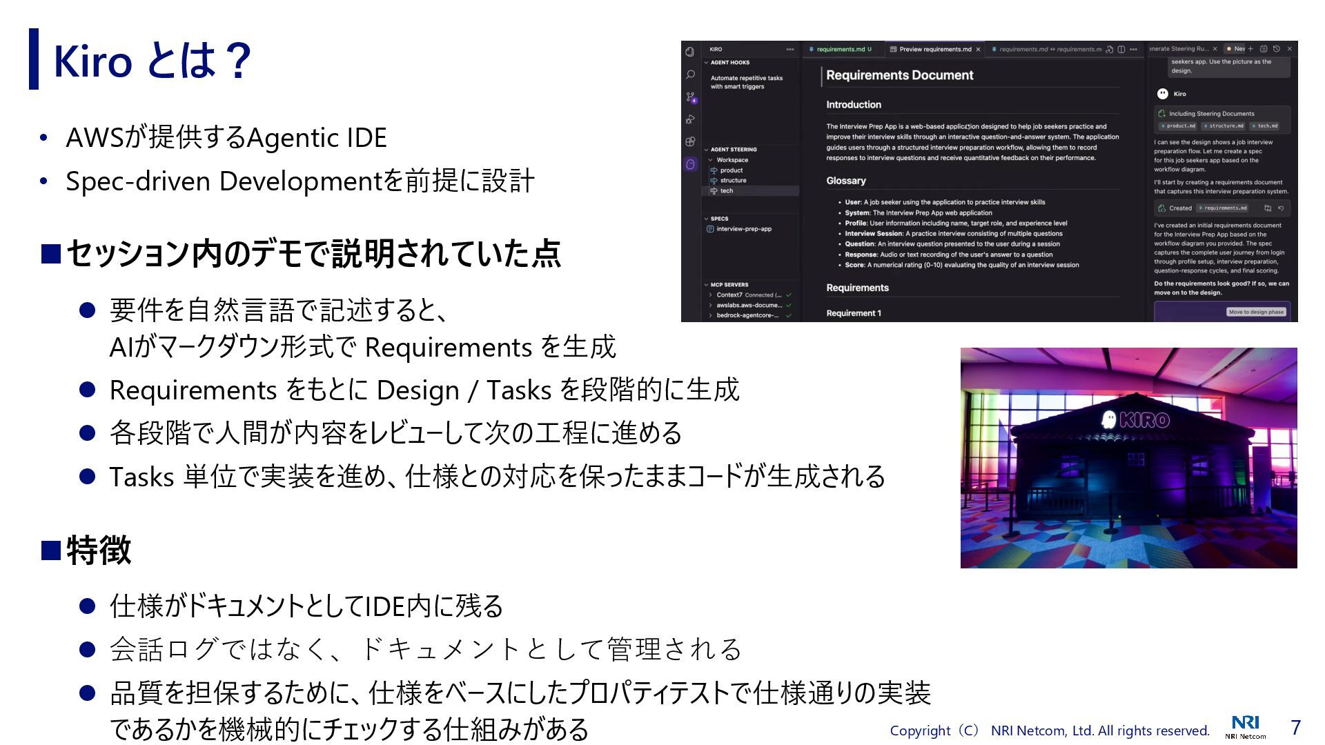 1. re:Invent 2025 セッションレポ ~ Spec-driven development with Kiro ~ NRIグループ