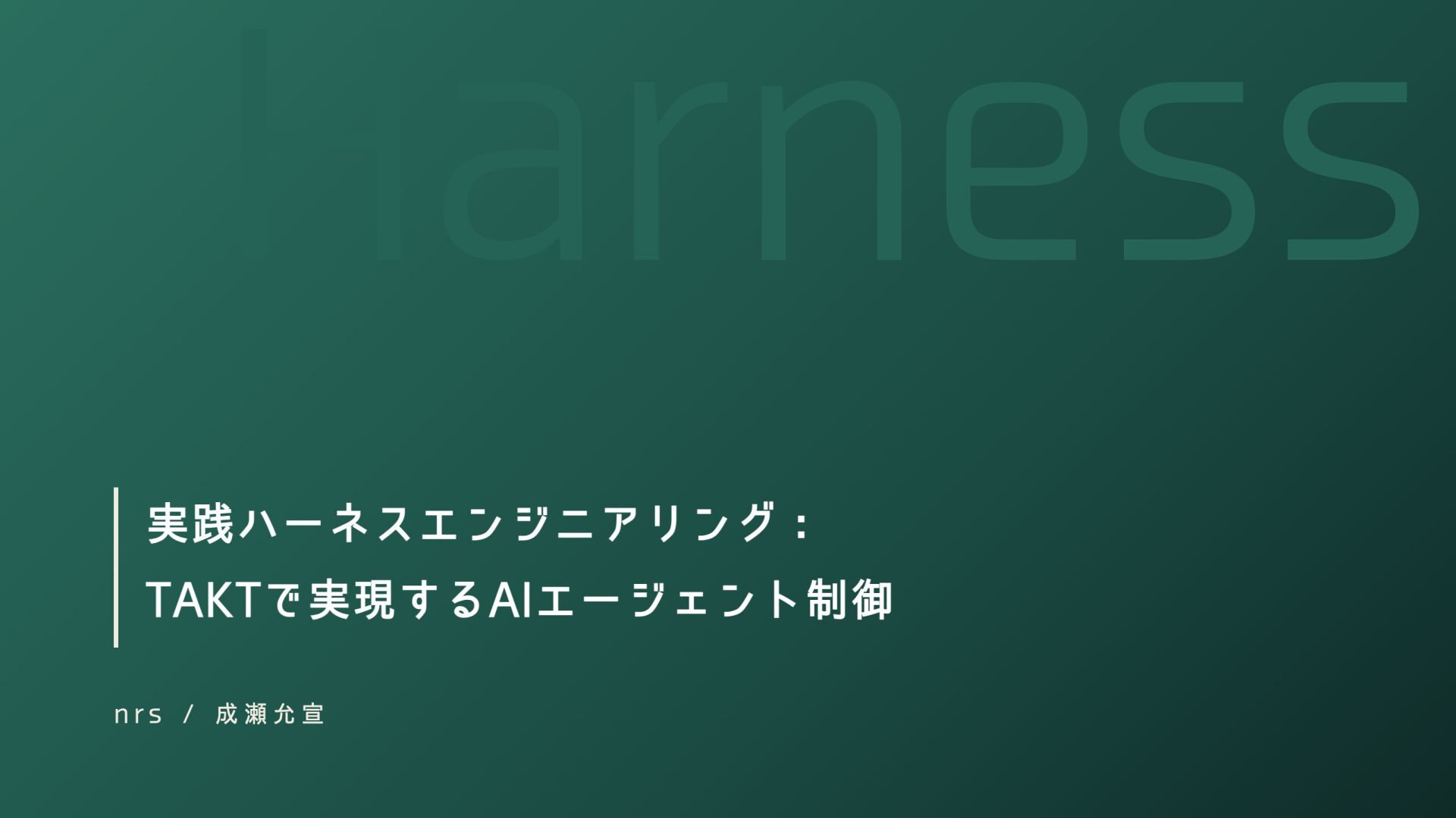 実践ハーネスエンジニアリング:TAKTで実現するAIエージェント制御 / Practical Harness Engineering: AI Agent Control Enabled by TAKT