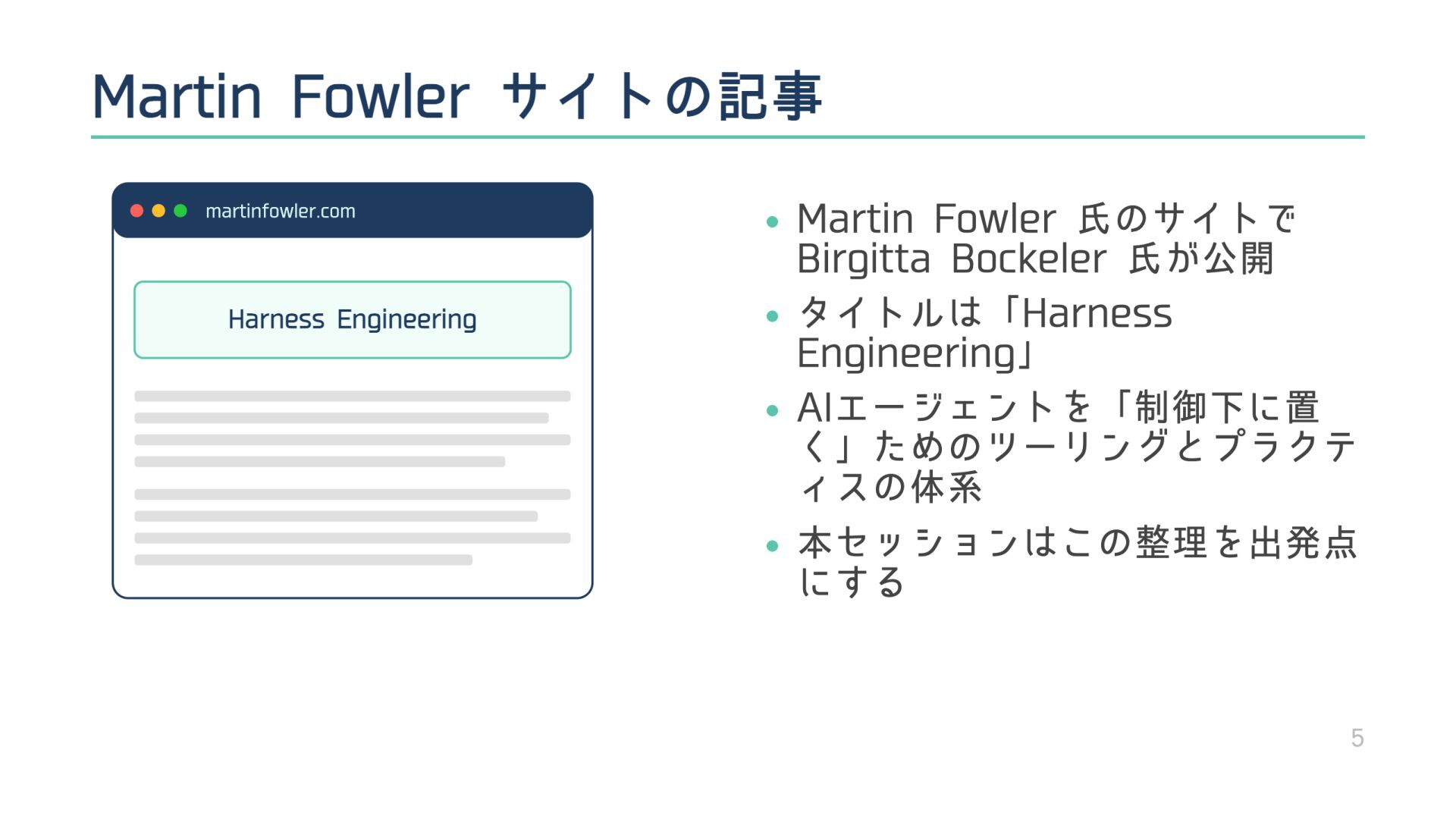 『【Harness Engineering入門】AIエージェントを制御するアプローチ』というイベントの講演資料です