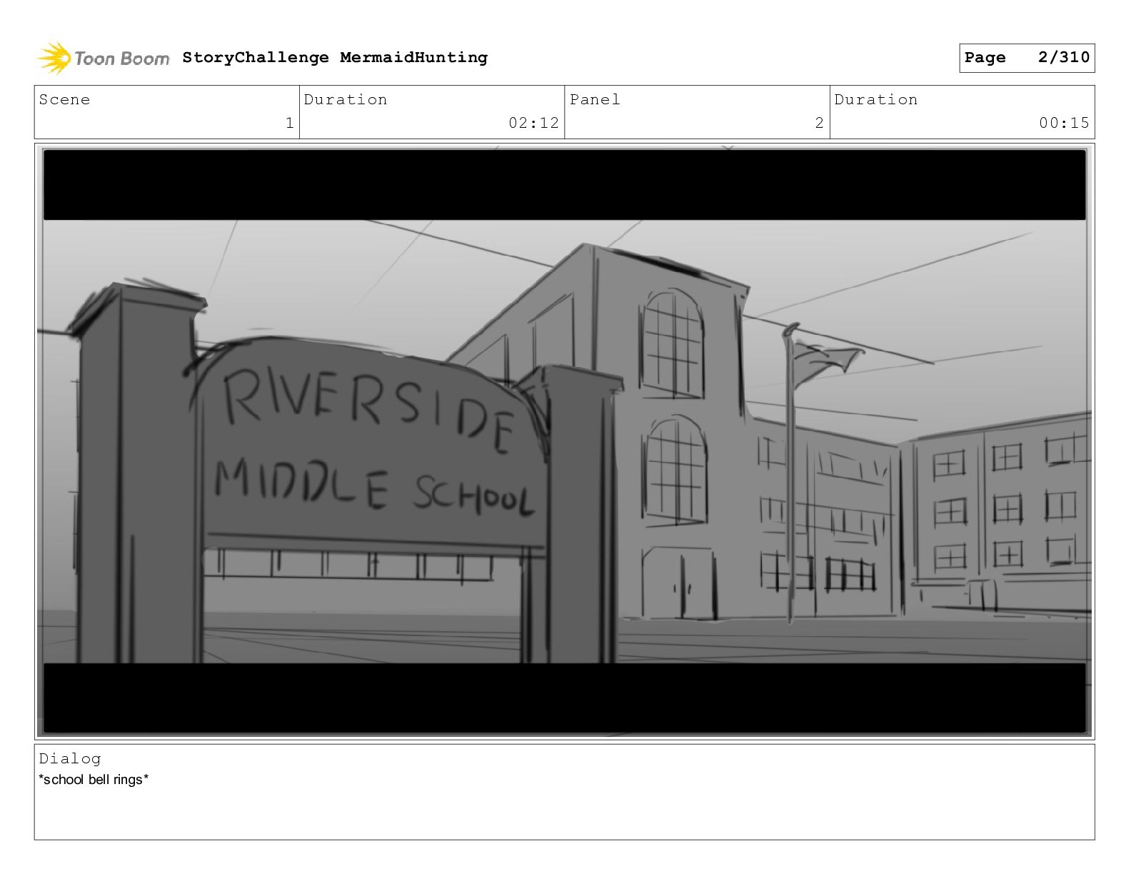 Scene 1 Duration 02:12 Panel 1 Duration 00:15 Dialog *school