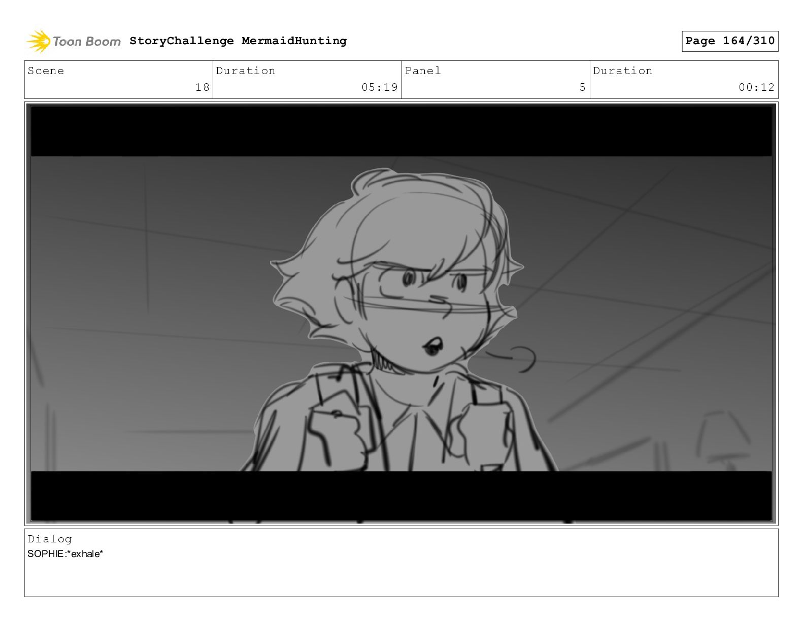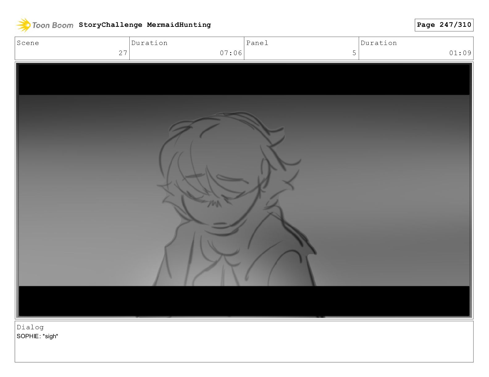 Scene 29 Duration 05:03 Panel 7 Duration 00:04 Dialog SOPHIE: