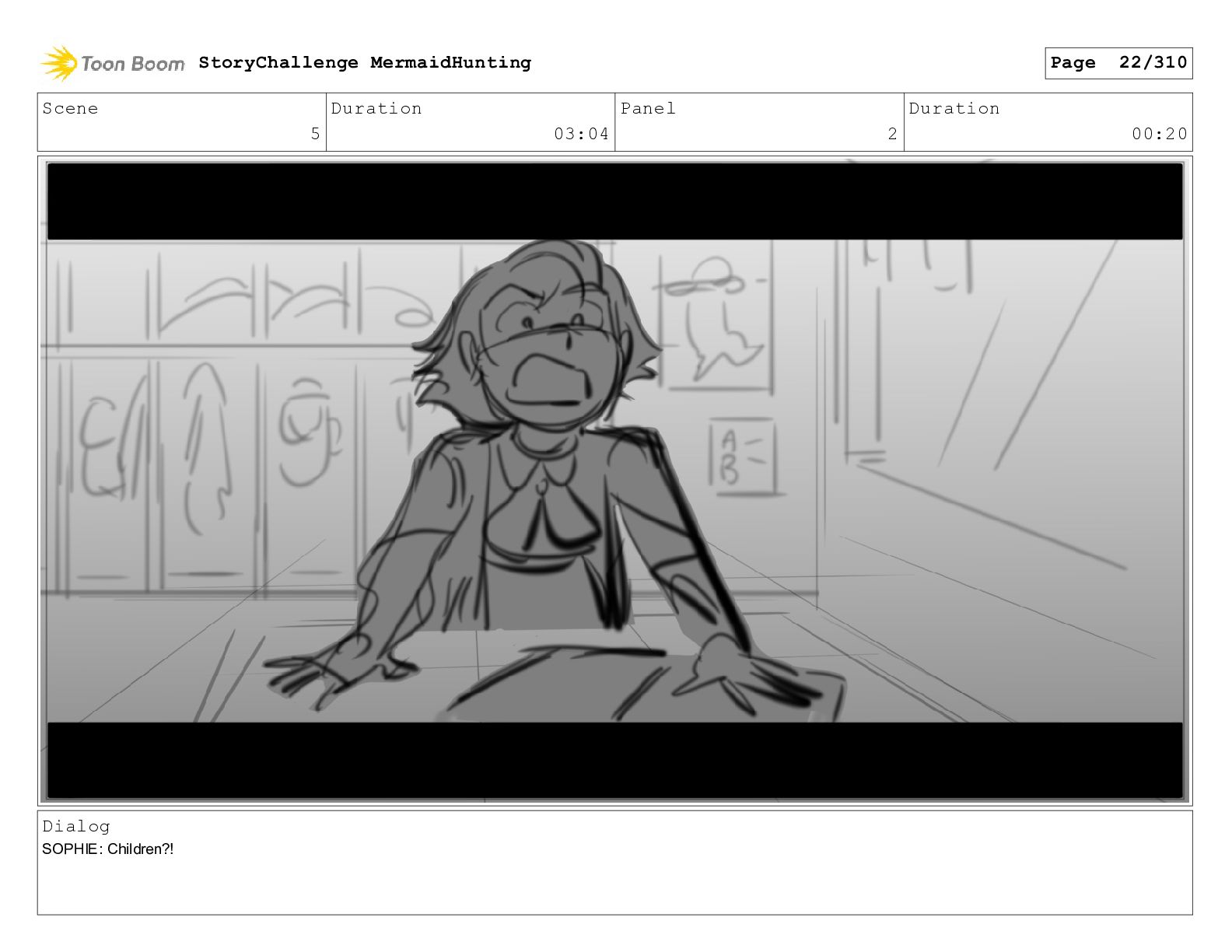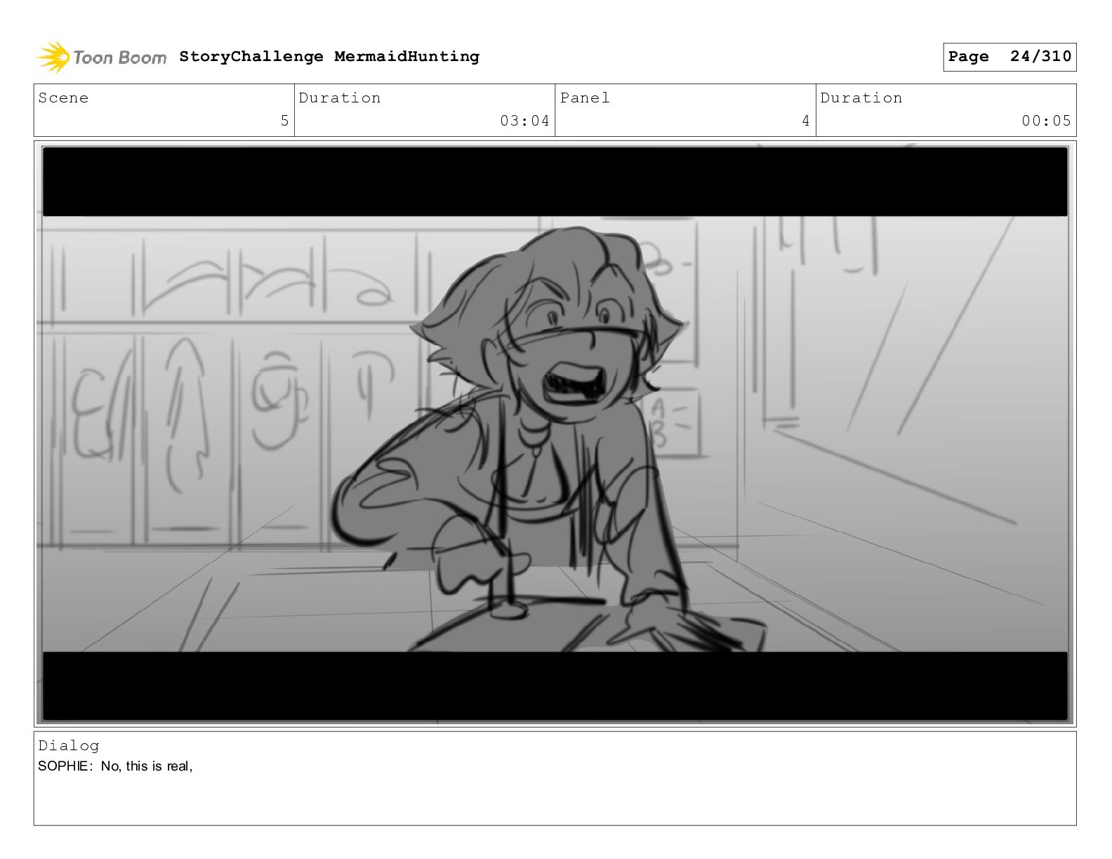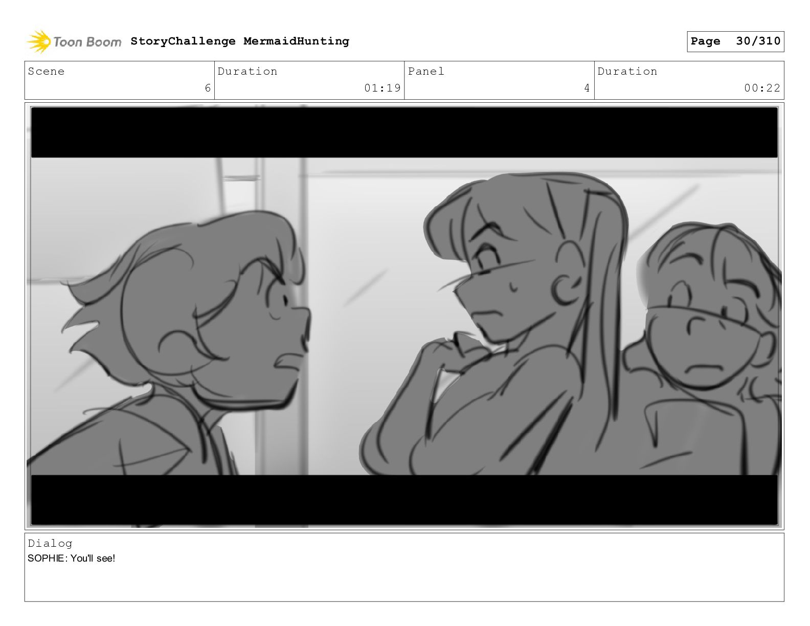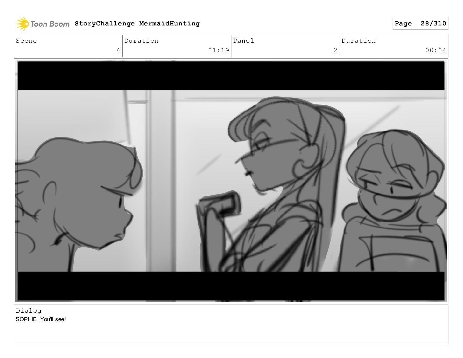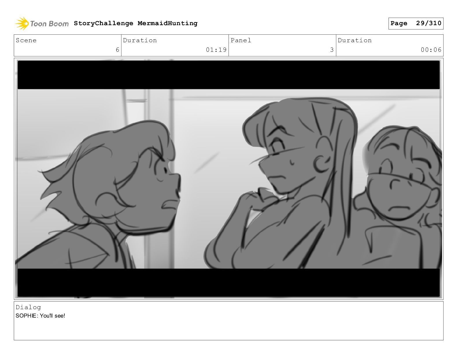 Scene 29 Duration 05:03 Panel 6 Duration 00:04 Dialog SOPHIE: