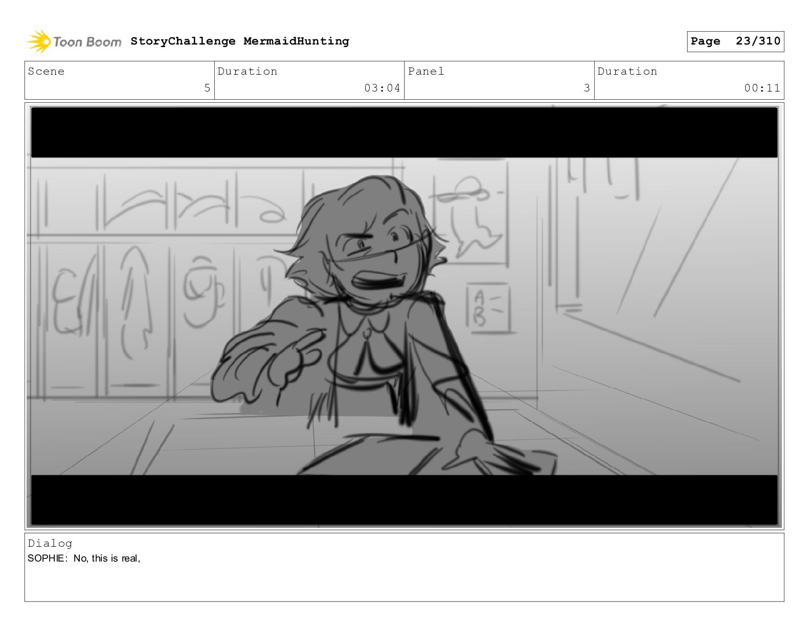 Scene 32 Duration 06:16 Panel 3 Duration 00:11 Dialog SOPHIE: