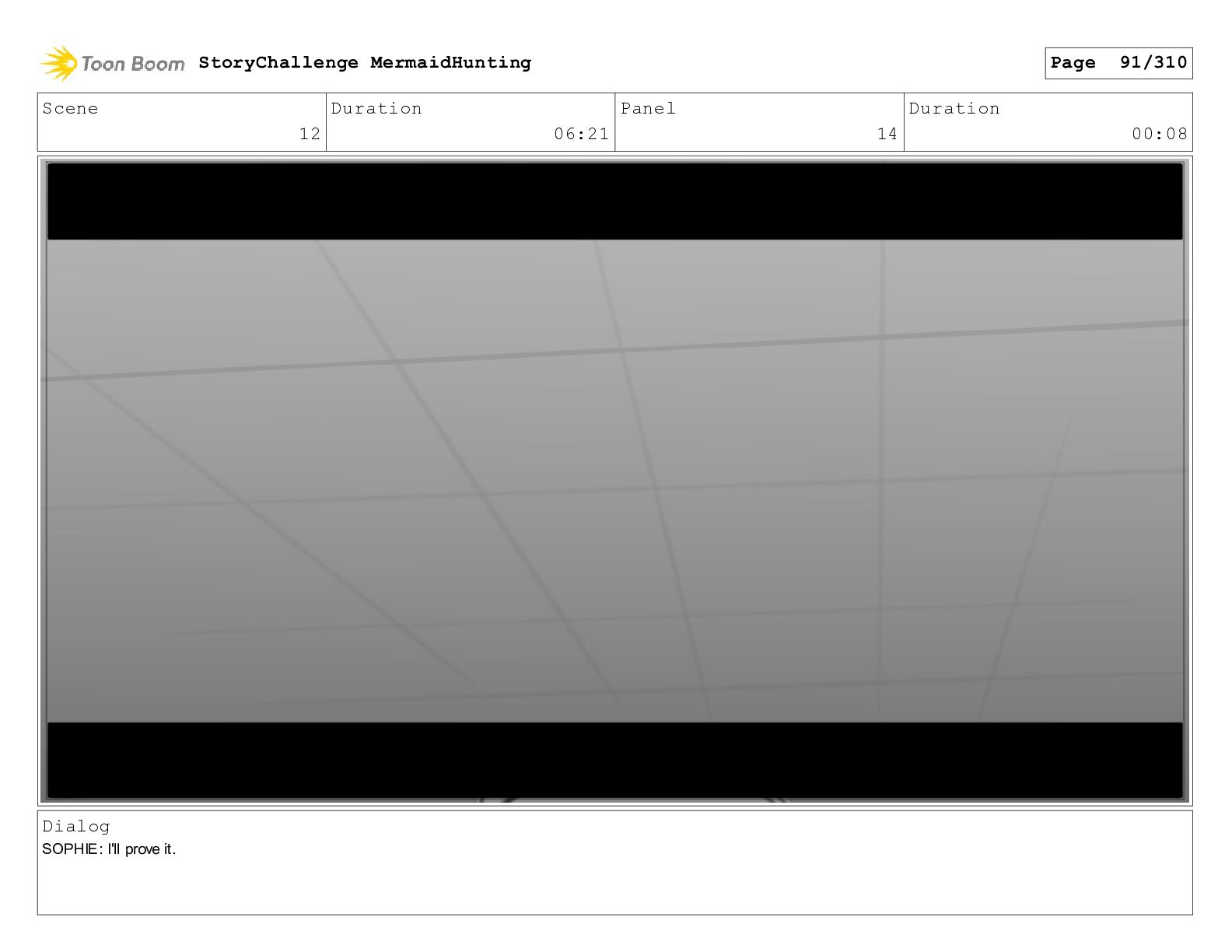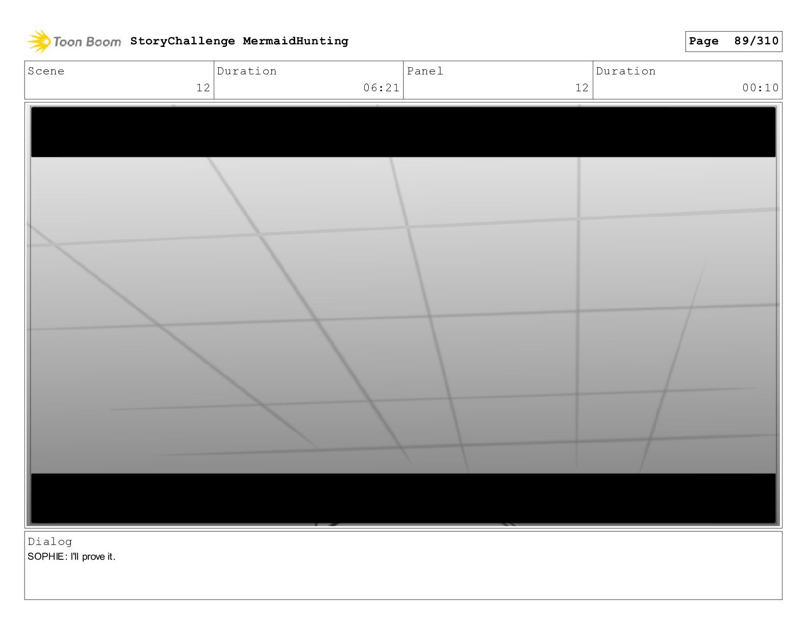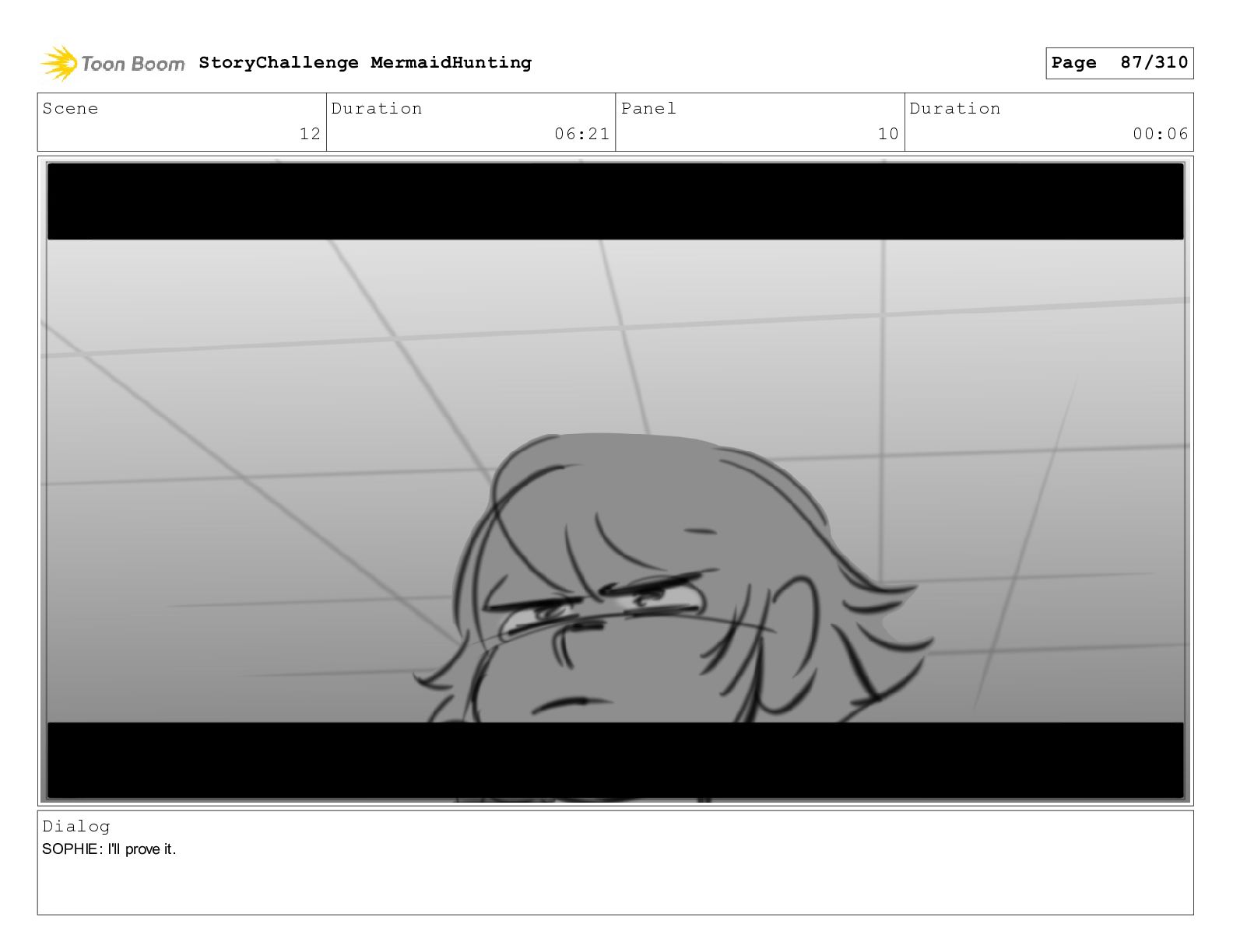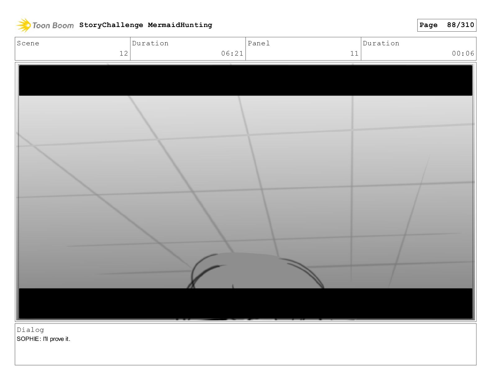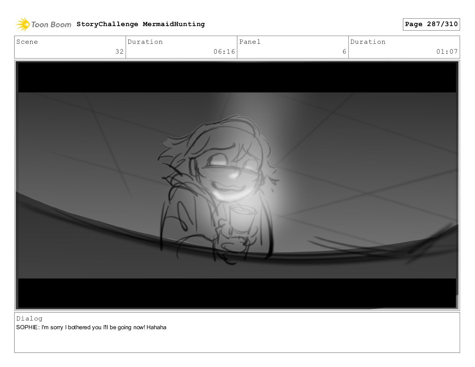 Scene 32 Duration 06:16 Panel 6 Duration 01:07 Dialog SOPHIE:
