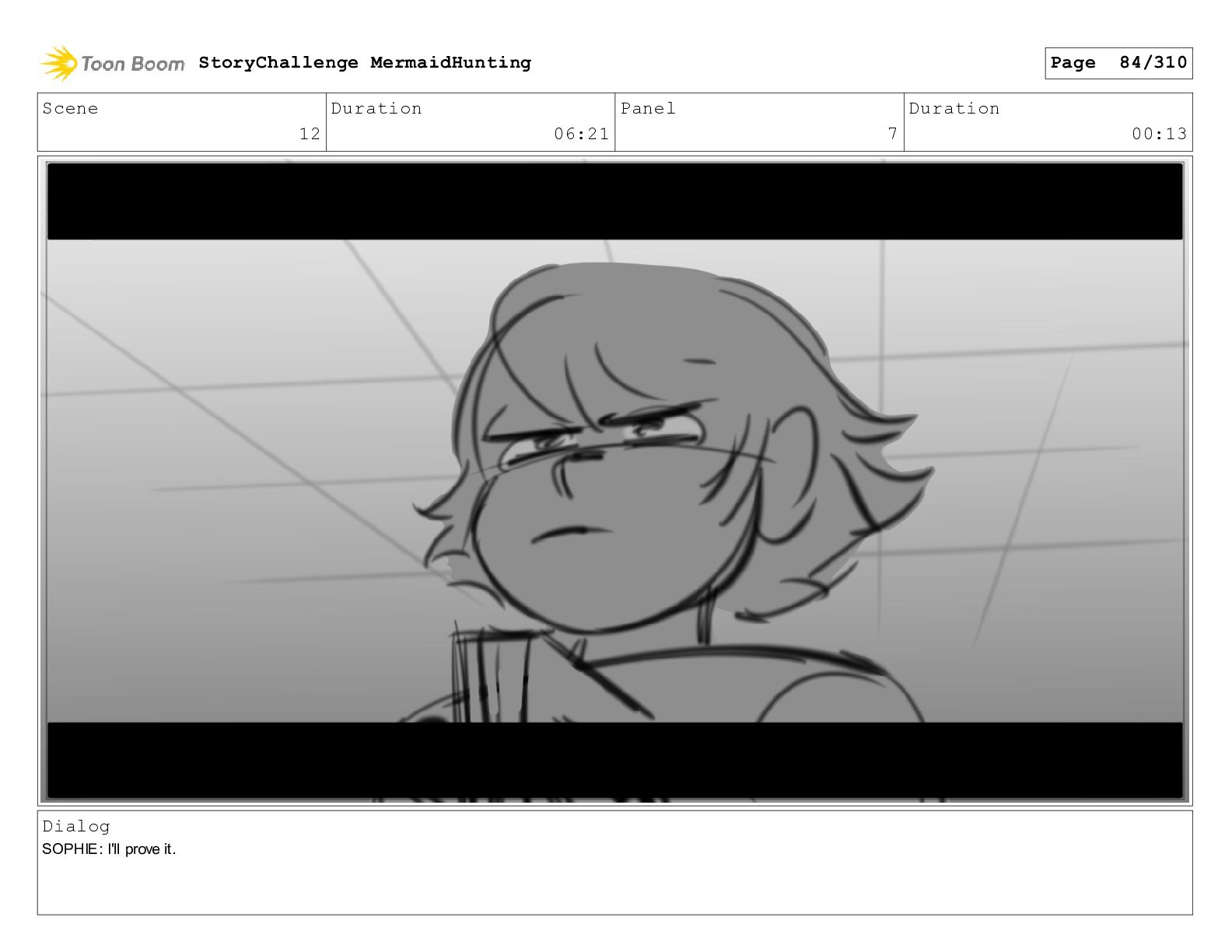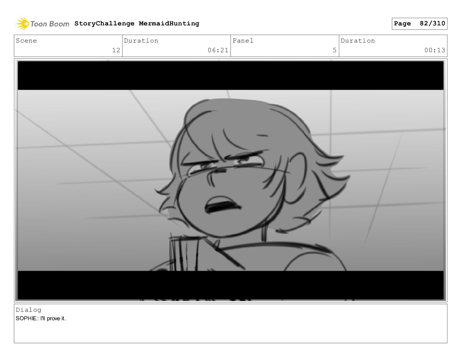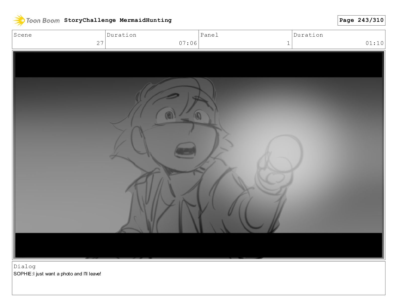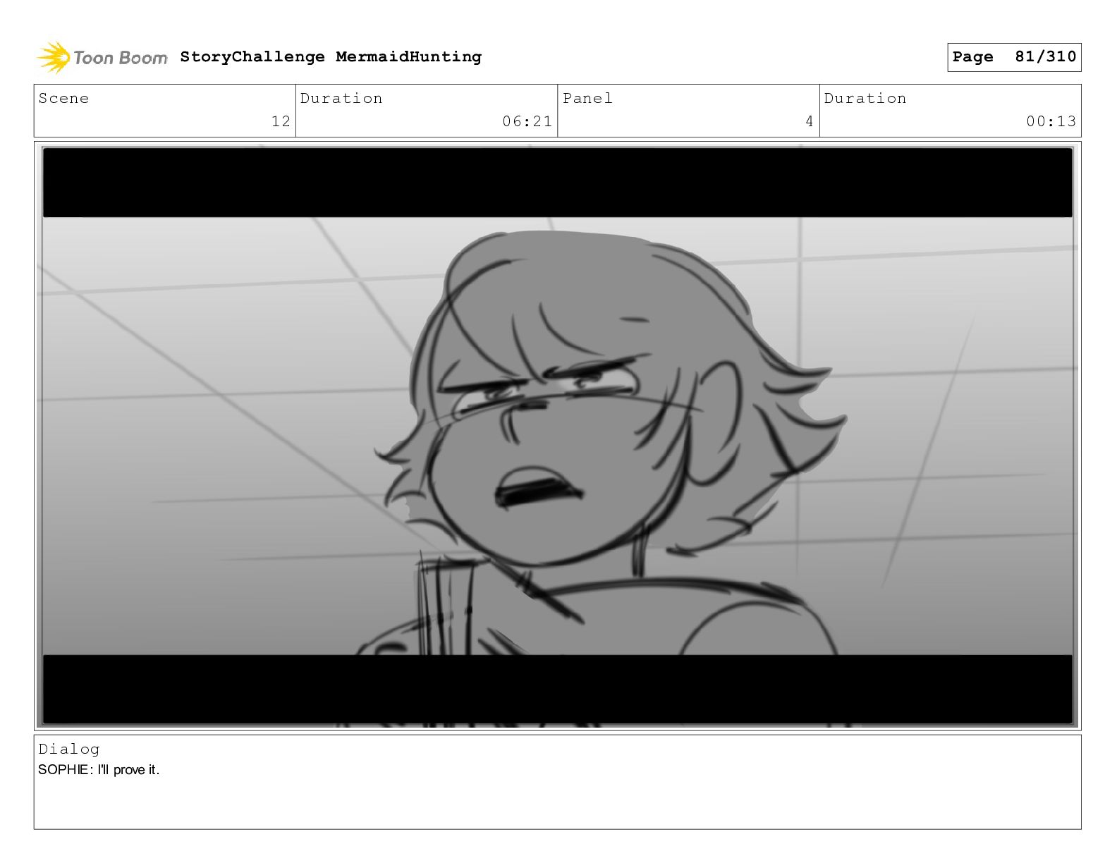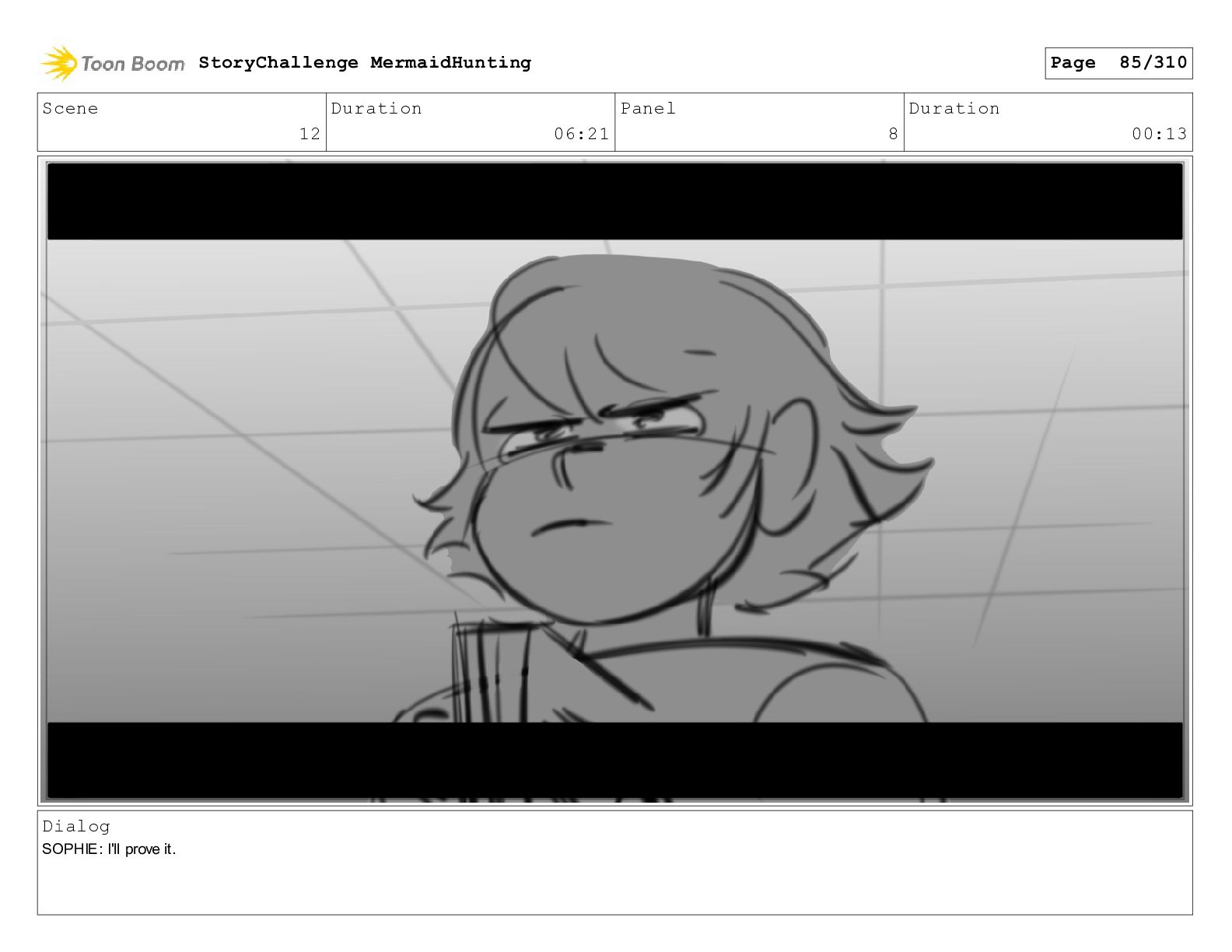 Scene 32 Duration 06:16 Panel 6 Duration 01:07 Dialog SOPHIE: