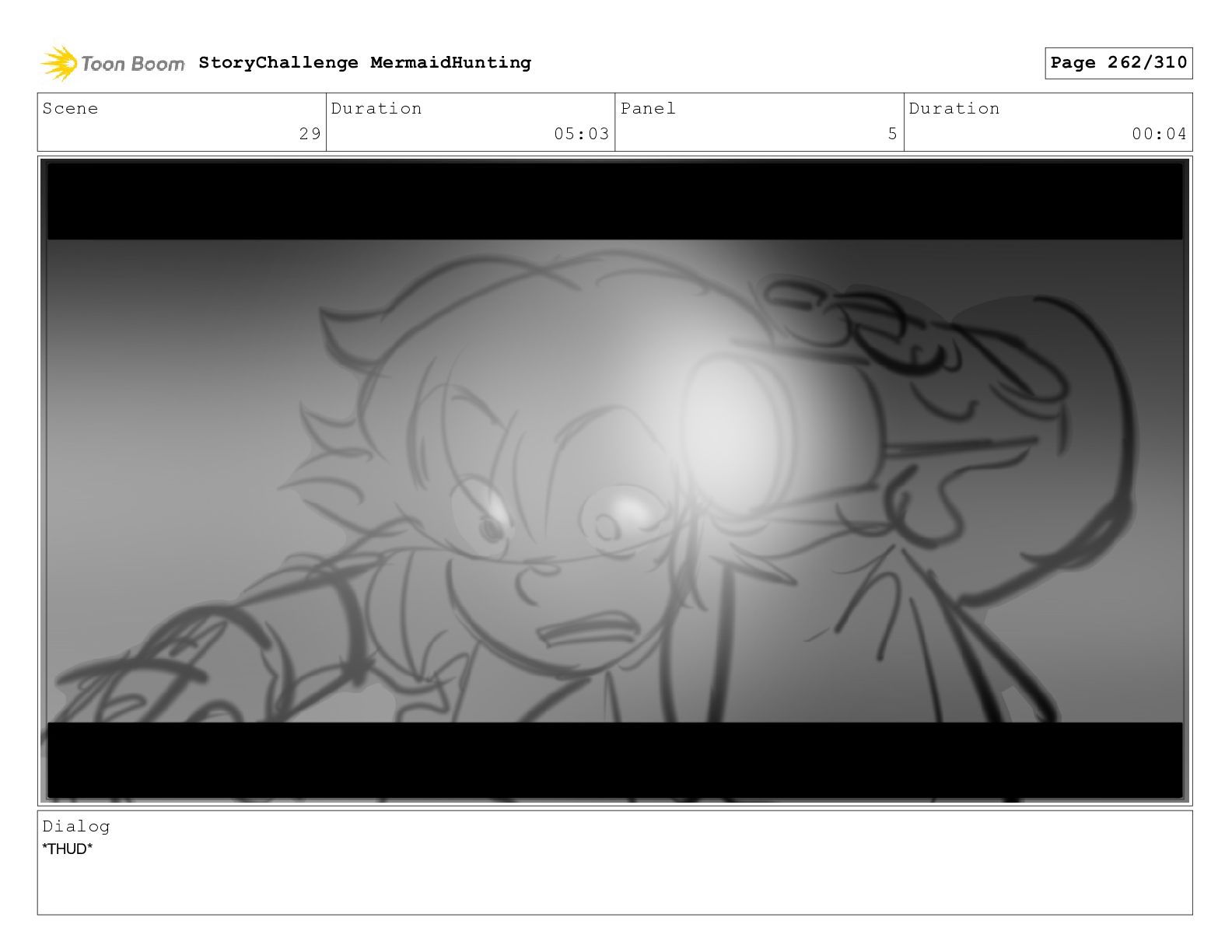 Scene 29 Duration 05:03 Panel 5 Duration 00:04 Dialog *THUD*
