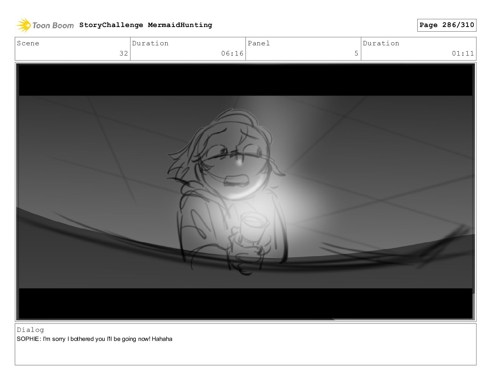 Scene 32 Duration 06:16 Panel 5 Duration 01:11 Dialog SOPHIE: