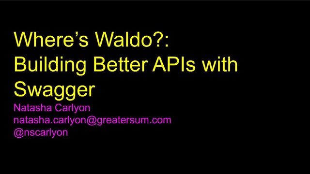 Where’s Waldo?: Building Better APIs with Swagger Natasha Carlyon