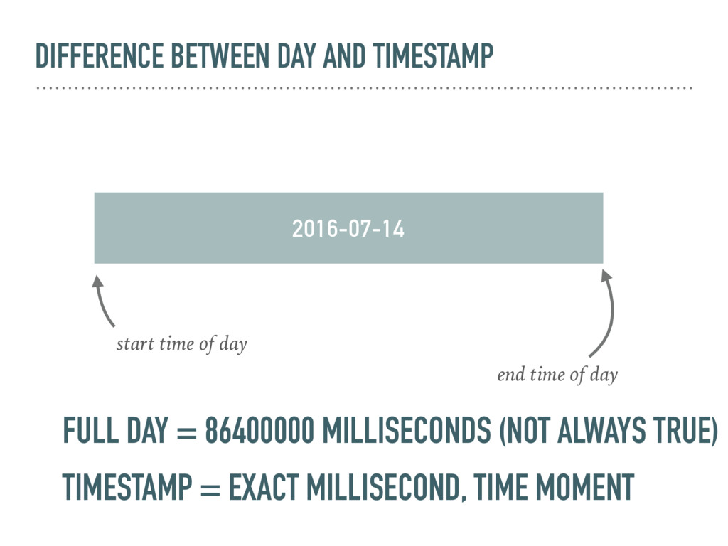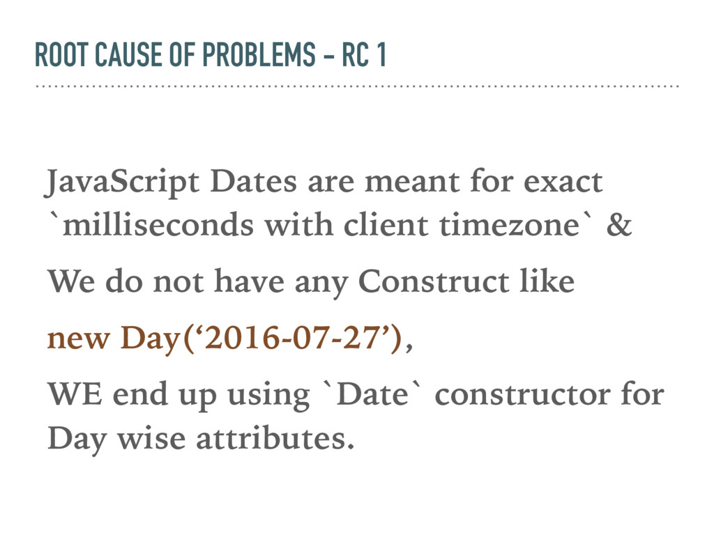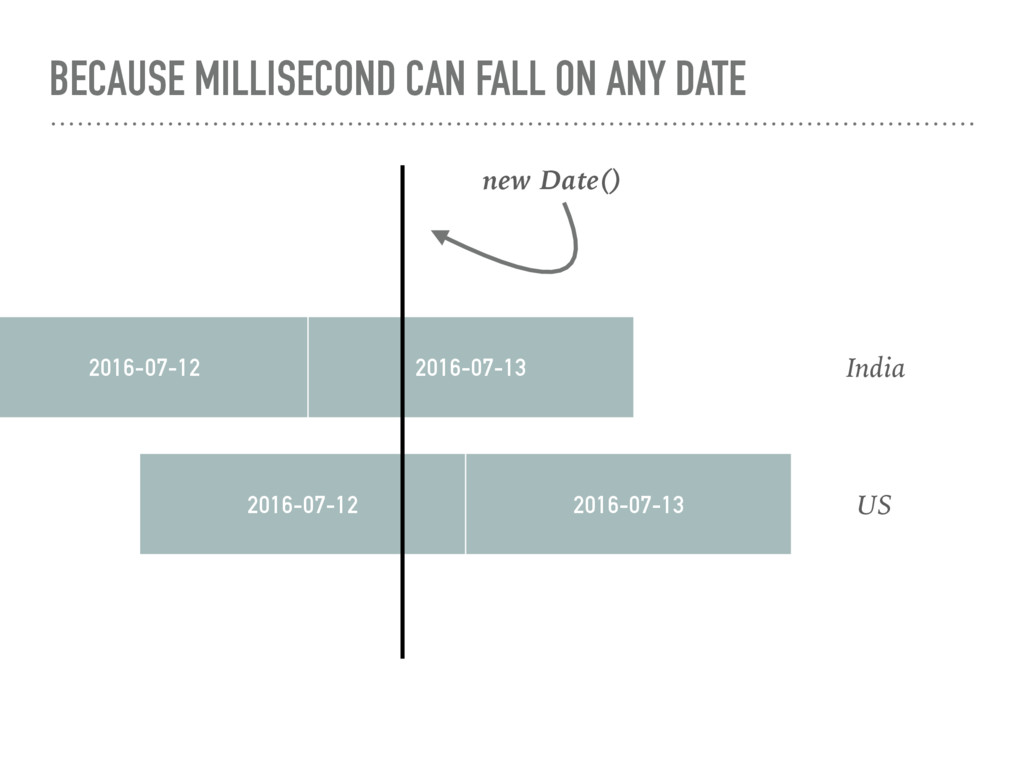 meant for exact `milliseconds with client timezone` & We do not have any Construct like new Day(‘2016-07-27’), WE end up using `Date` constructor for Day wise attributes.