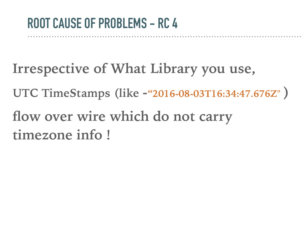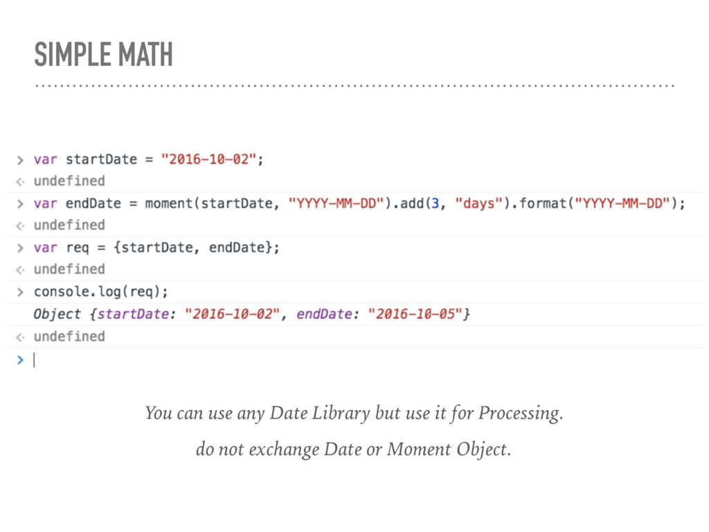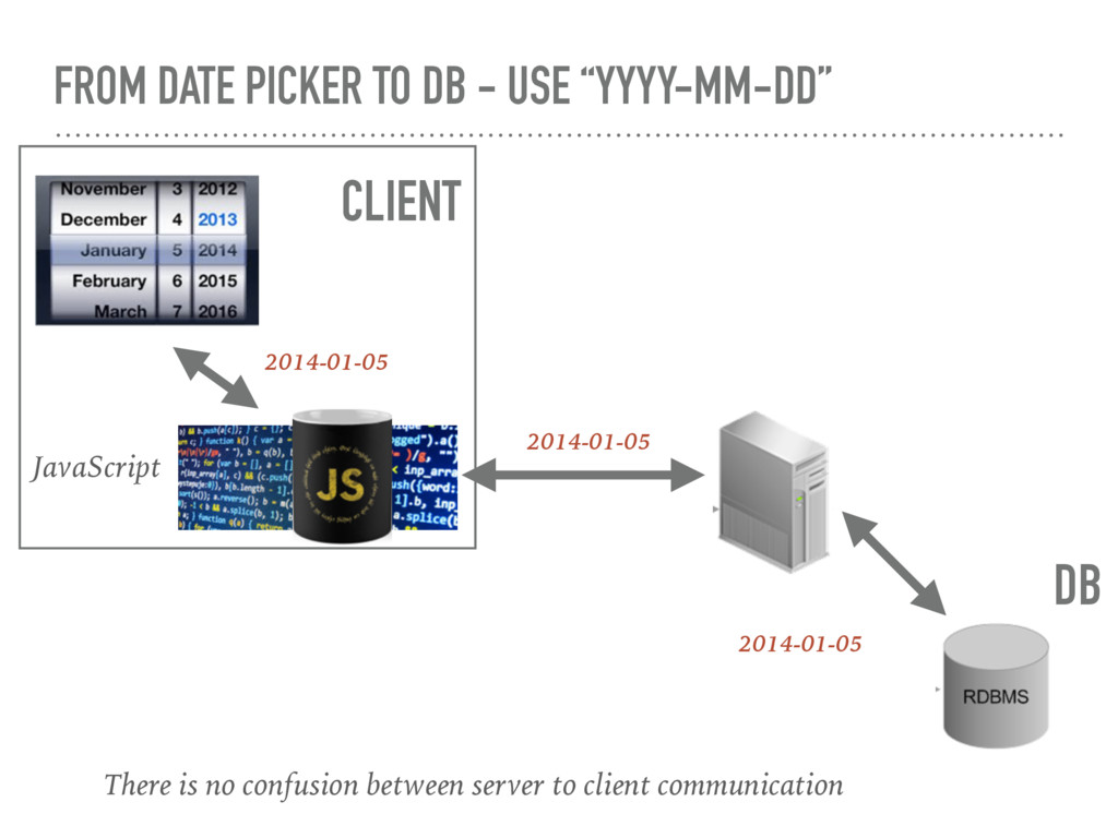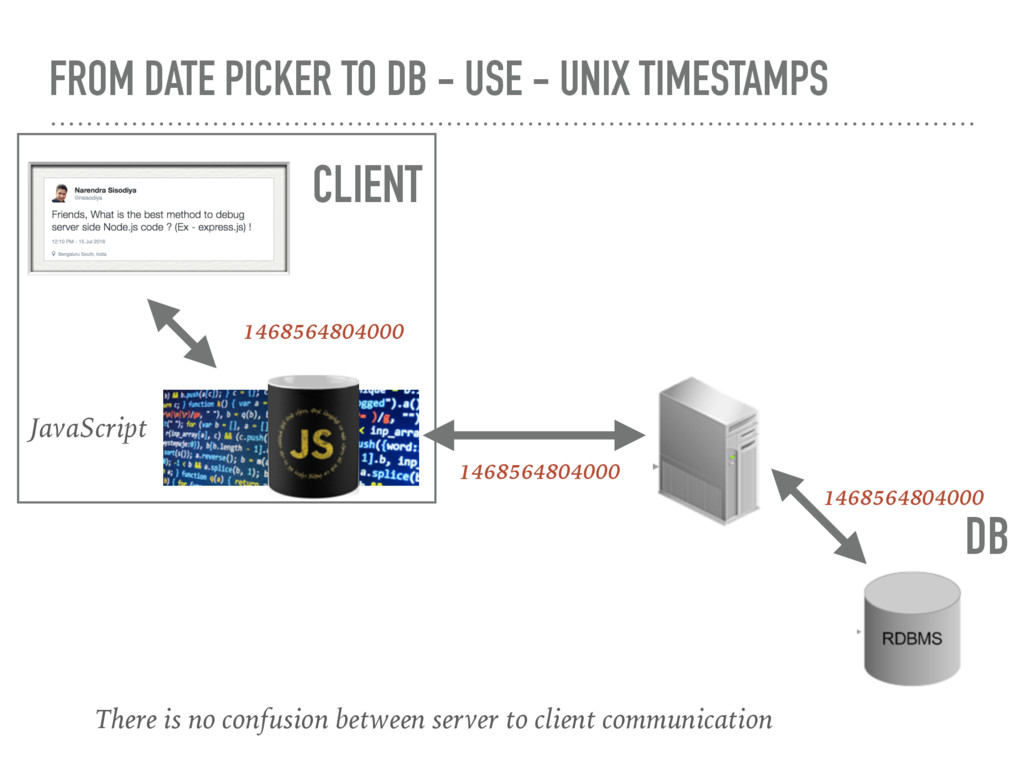 over wire and Client and Server may have there different understanding about timezone ! That create problem Client Server 2016-08-04T08:00:00.000Z 2016-08-04 1:30 PM In India 2016-08-03 10:00PM In US/Hawaii