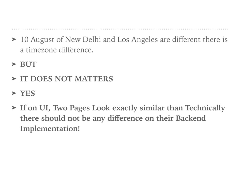 different there is a timezone difference. ➤ BUT ➤ IT DOES NOT MATTERS ➤ YES ➤ If on UI, Two Pages Look exactly similar than Technically there should not be any difference on their Backend Implementation!