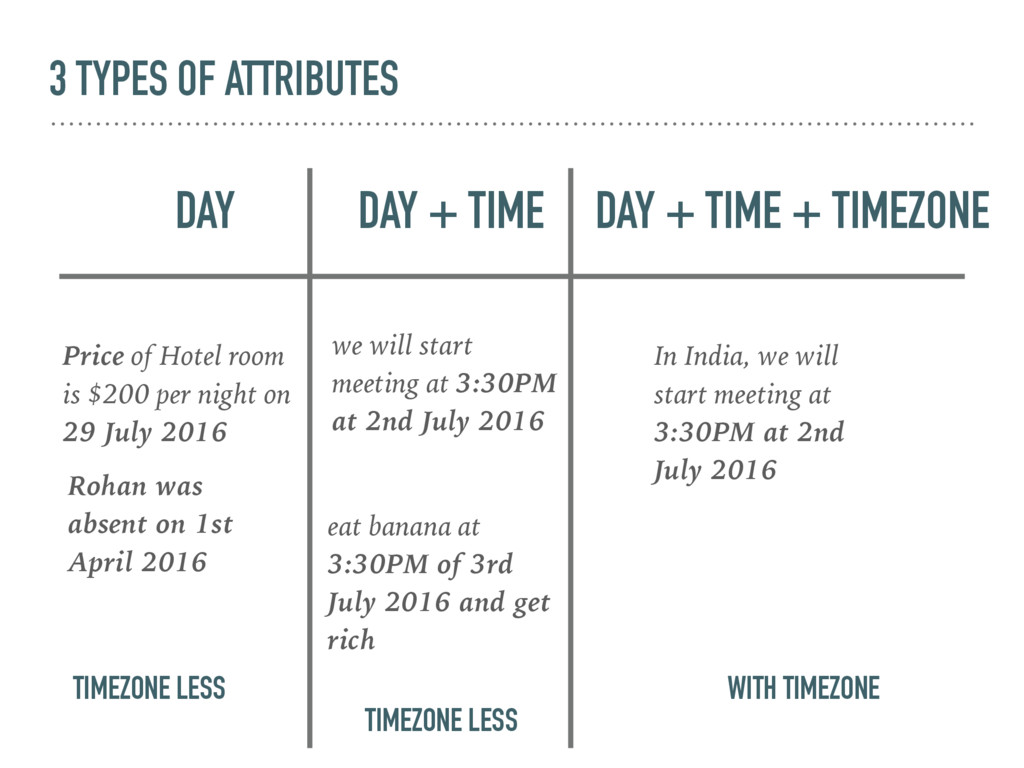 Hotel room is $200 per night on 29 July 2016 Rohan was absent on 1st April 2016 DAY + TIME + TIMEZONE In India, we will start meeting at 3:30PM at 2nd July 2016 we will start meeting at 3:30PM at 2nd July 2016 eat banana at 3:30PM of 3rd July 2016 and get rich TIMEZONE LESS WITH TIMEZONE TIMEZONE LESS