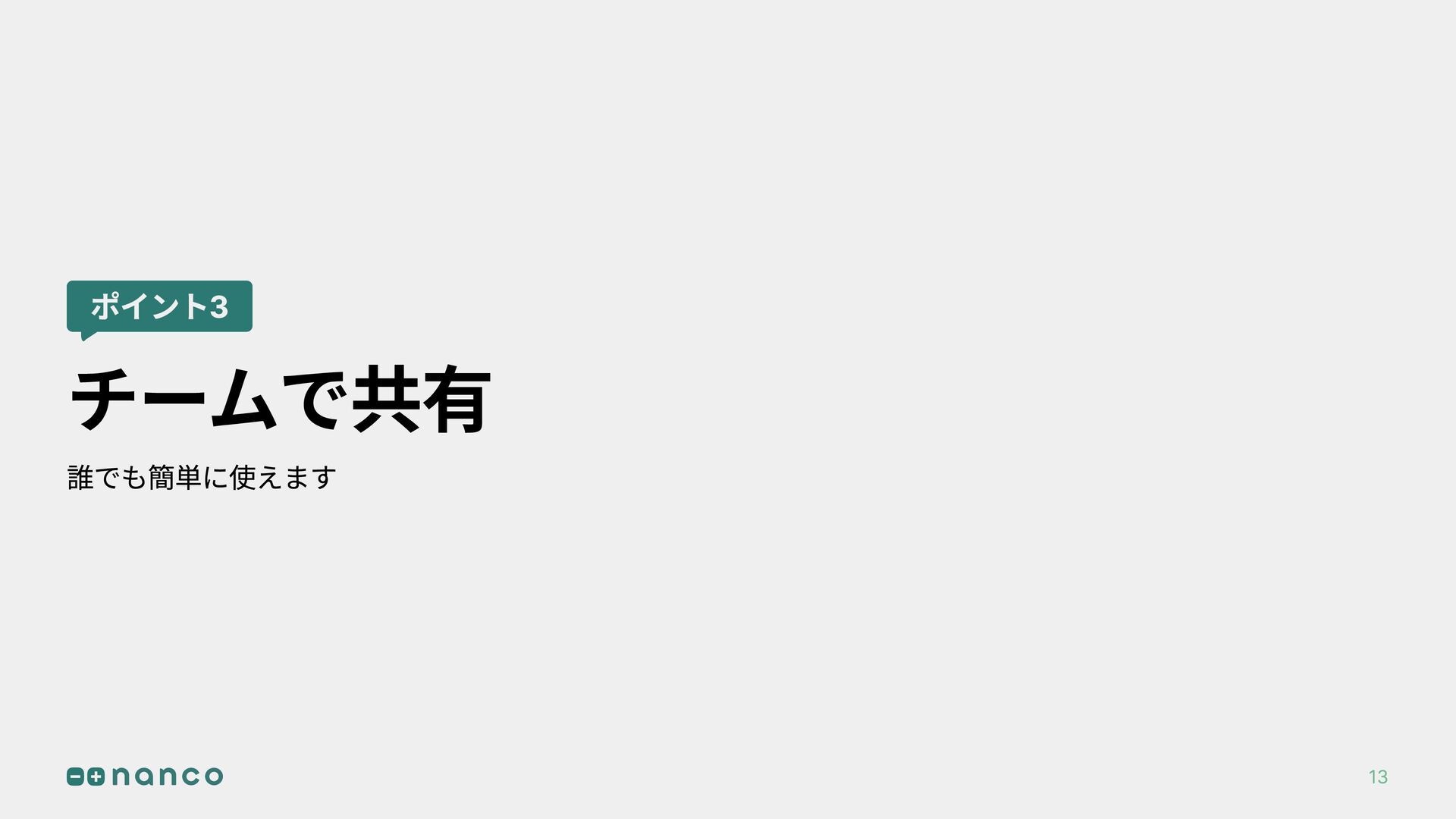 ポイント3 チームで共有 誰でも簡単に使えます 13