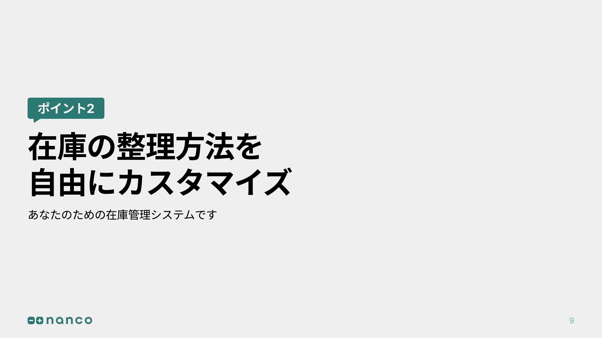 ポイント2 在庫の整理方法を 自由にカスタマイズ あなたのための在庫管理システムです 9
