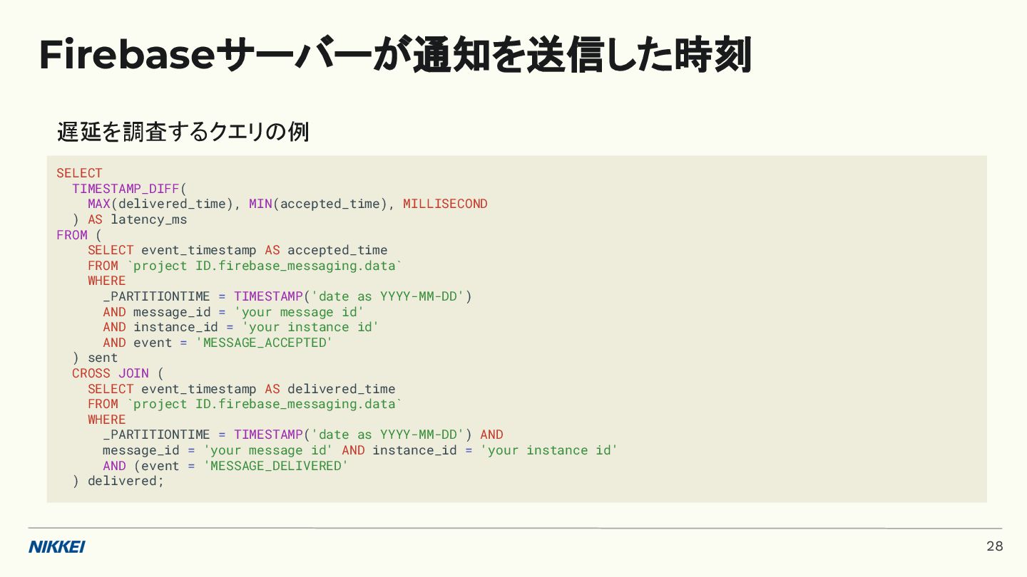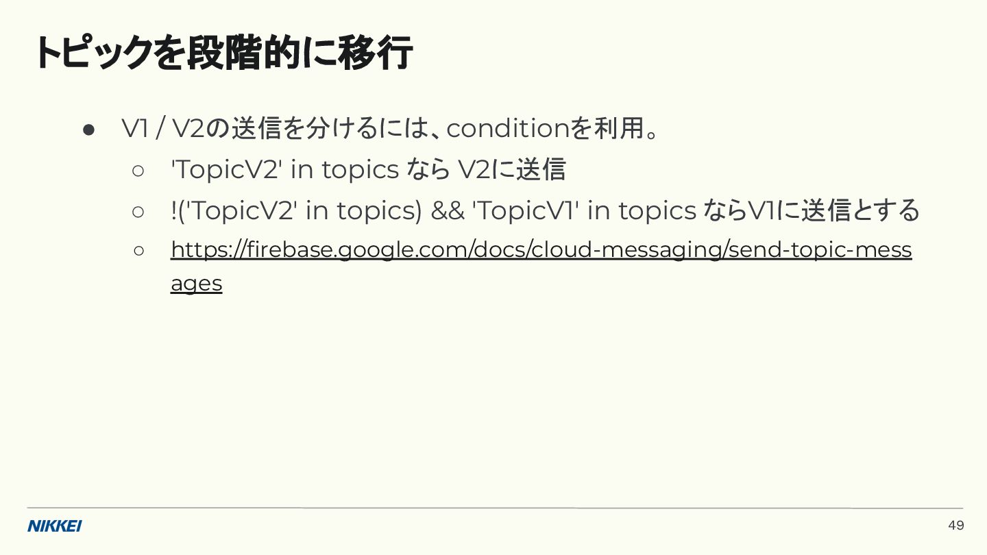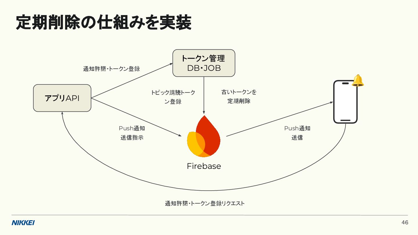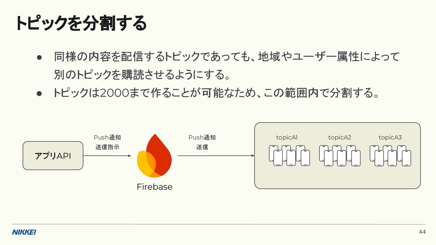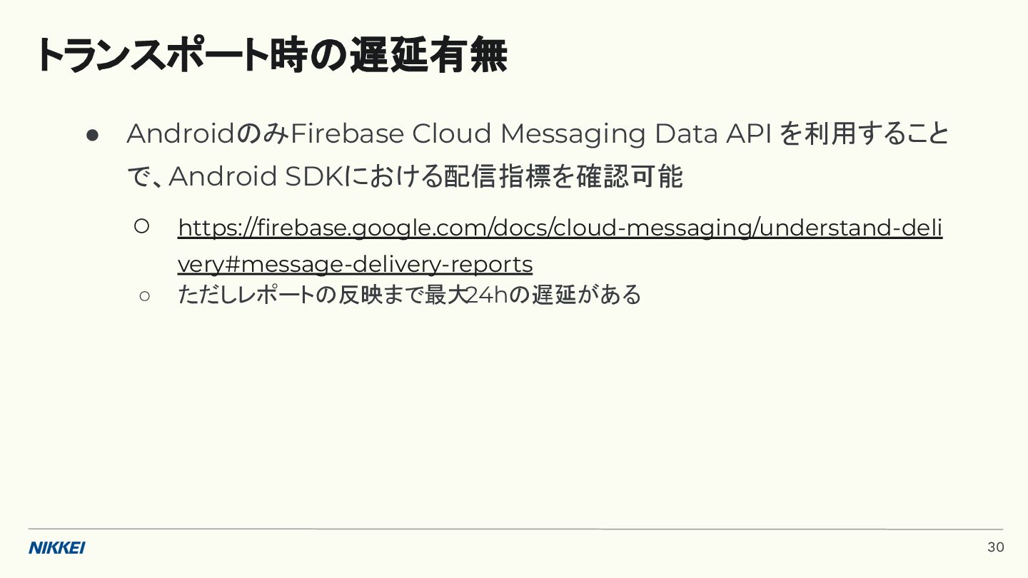 'time': '2:45', }, token=registration_token, ) response = messaging.send(message) registration_tokens = [ 'YOUR_REGISTRATION_TOKEN_1', # ... 'YOUR_REGISTRATION_TOKEN_N', ] message = messaging.MulticastMessage( data={'score': '850', 'time': '2:45'}, tokens=registration_tokens, ) response = messaging.send_each_for_multicast(message) 複数デバイスへ送信 トークンベースの実装例 (Python) 10