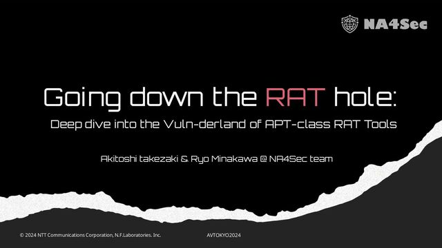 you for listening! 25 Going down the RAT hole: Deep dive into the Vuln-derland of APT-class RAT Tools Your comments & feedbacks are always welcome!! ☞ [email protected]