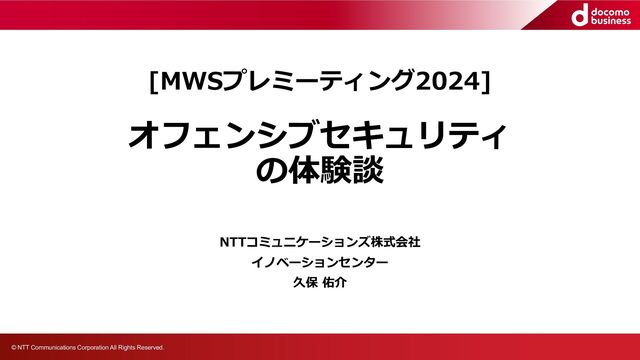 Name ︓ Yusuke Kubo Company ︓ NTT Communications Department ︓ Innovation Center (R&D) Role ︓ RedTeam - TeamV Product Manager Additional Info ︓ - Ex-MWS CUP Committee member (2021, 2022) - Ex-MWS CUP Participant(GOTO LOVE, UN頼み) - NTT Group Certified Security Principal - MITRE ATT&CK Contributor(T1562.009 Safe Mode Boot) - Red Team Summit 2023 Speaker - BSides Las Vegas 2023 Speaker - AppSec Village, Cloud Vilage@DEFCON31 Speaker 今⽇の体験談で話すネタ