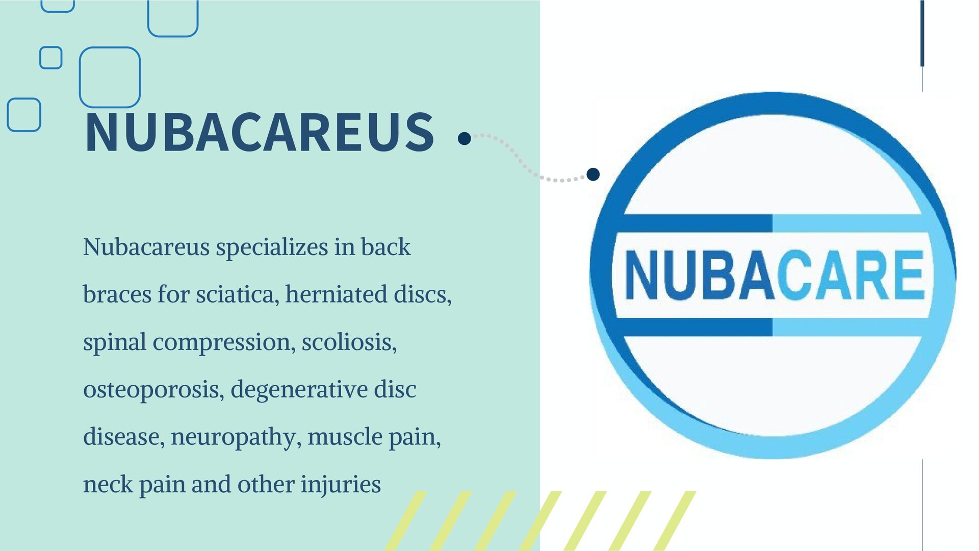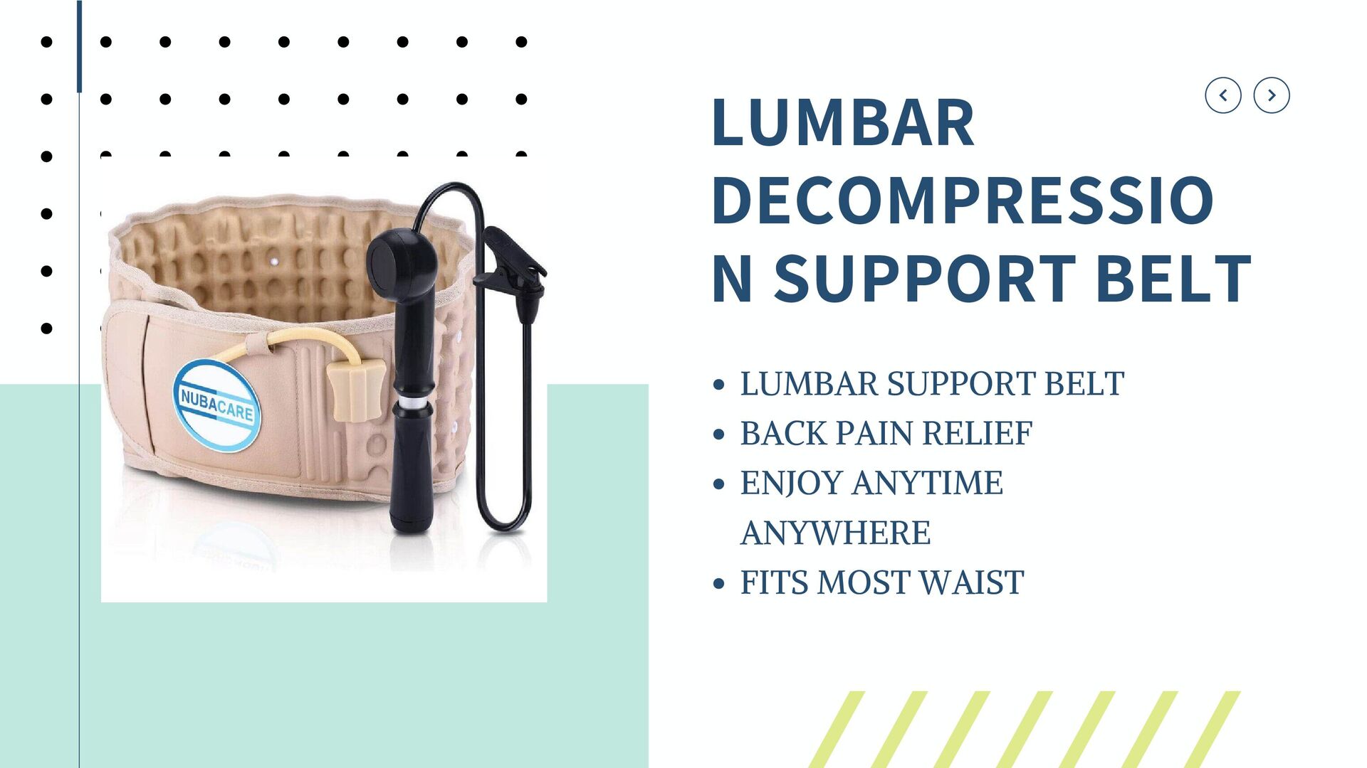 The spinal health products offered by Nubacare, a global supplier, include lumbar decompression belts, back stretchers, adjustable posture correctors, back braces, and cervical neck traction devices. https://nubacareus.com/.