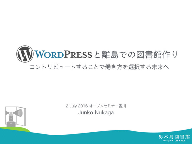 オープンセミナー2016香川スピーカースライド。WordCamp Tokyo 2015での登壇スライドに、男木島図書館開館後の状況などを追加したもの。