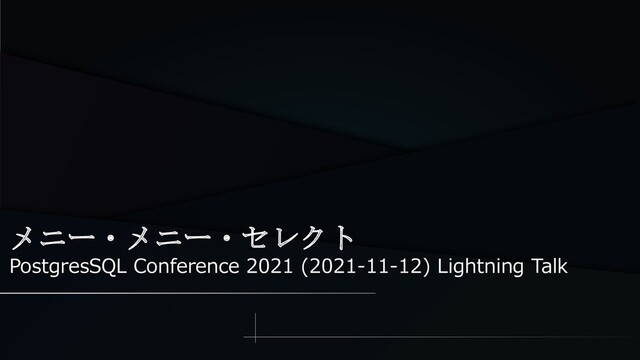 メニー・メニー・セレクト PostgresSQL Conference 2021 (2021-11-12) Lightning Talk