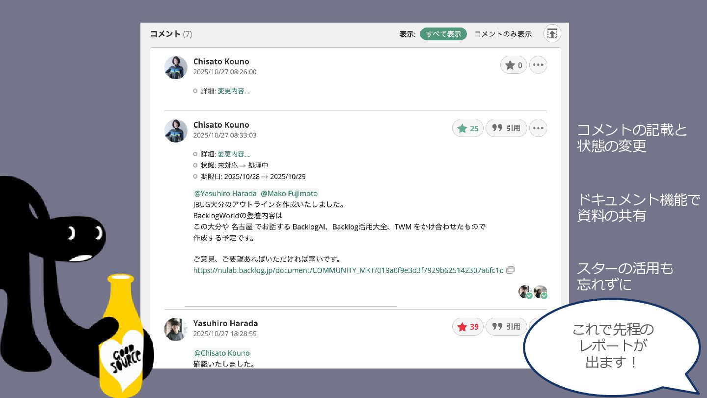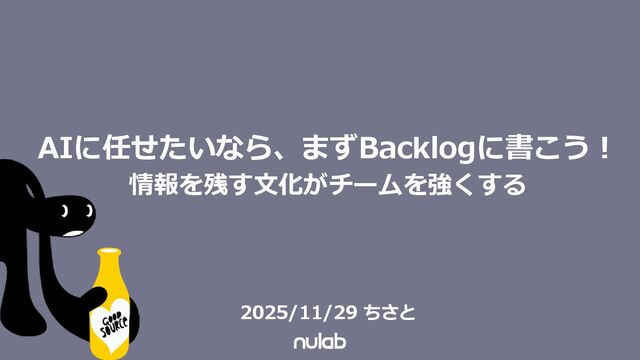 歴 請負系システム開発会社のシステムエンジニアとして従事 顧客の課題解決のためチームの成長をデザインする役割を担う 顧客の課題解決に向けて強いチームを作るためBacklog,Cacoo を利用。情報共有/整理と心理的安全性をサポートする機能に 助けられながらチームを育成。両サービスの大ファンに。 恩返しをしたくてコミュニティJBUG、CacooCNに参加。各地 で開催されるイベントの登壇を通じて、現場でのリアルな体験 と「好き」を発信 2025年4月株式会社 ヌーラボ に エバンジェリストとして JOIN 株式会社 ヌーラボ ビジネスグロース部コミュニティ課 創造を易しく楽しくするヒントや工夫を届けてまいります!