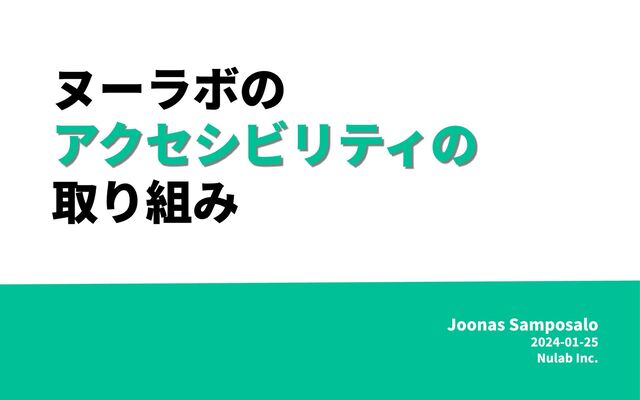 ヌーラボの アクセシビリティの 取り組み Joonas Samposalo 2024-01-25 Nulab Inc.
