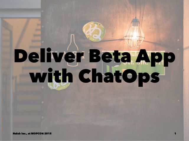 gym({ workspace: "Typetalk.xcworkspace", configuration: "Beta", scheme: "Typetalk-Beta", }) crashlytics({ crashlytics_path: 'Pods/Crashlytics/Crashlytics.framework', ipa_path: 'Typetalk.ipa', notes_path: 'ChangeLog.md' }) typetalk({ message: "Typetalk iOS Beta App has been updated.\nCheck your email or restart the app then you will get update alert message.", note_path: 'ChangeLog.md', topic_id: 2 }) end Nulab Inc., at MOPCON 2015 36